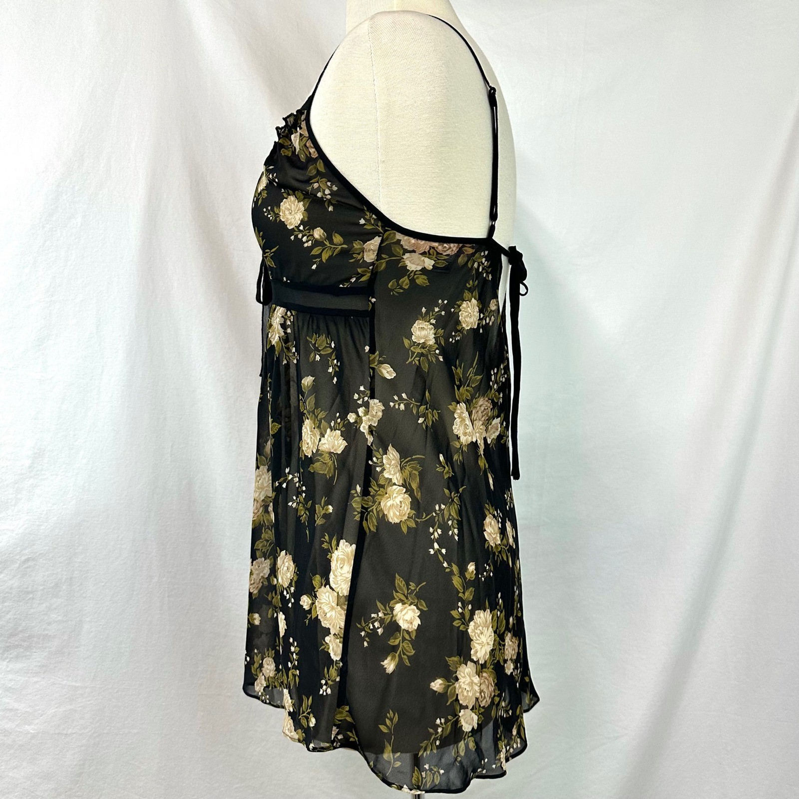 как выглядит VICTORIAS SECRET VINTAGE Y2K Black Floral Babydoll Chemise Bow Sheer Coquette M фото
