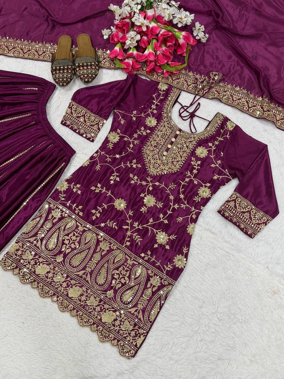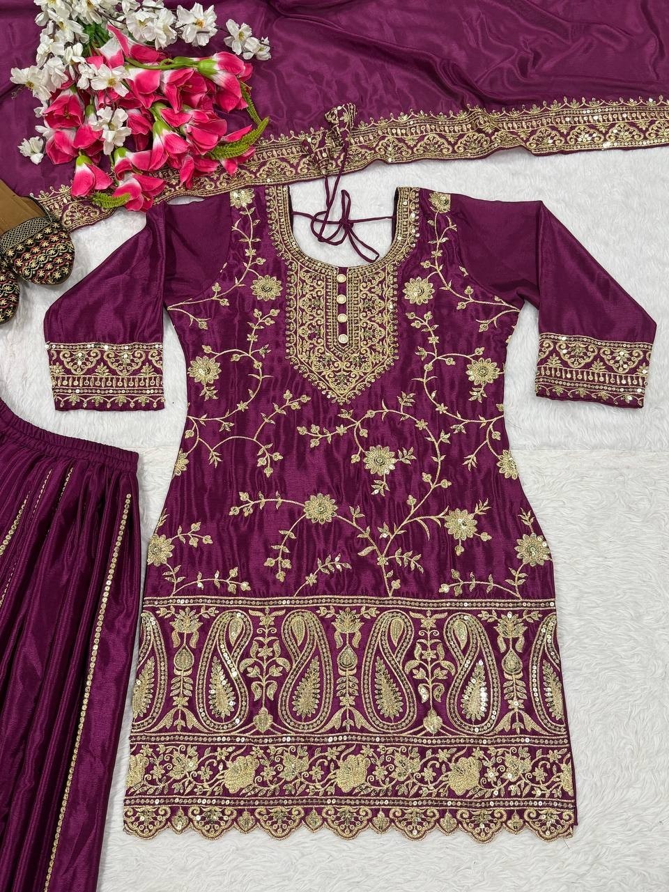 Designer Heavy Chinon Silk Top Palazzo With Dupatta For Reception Wear