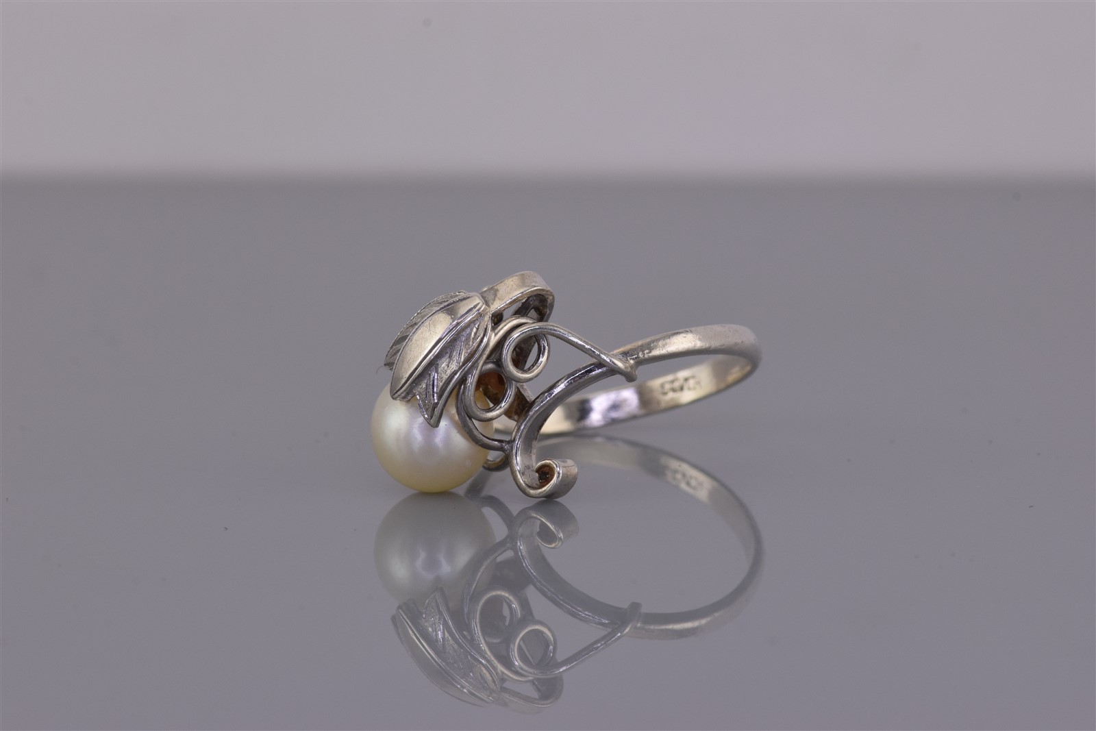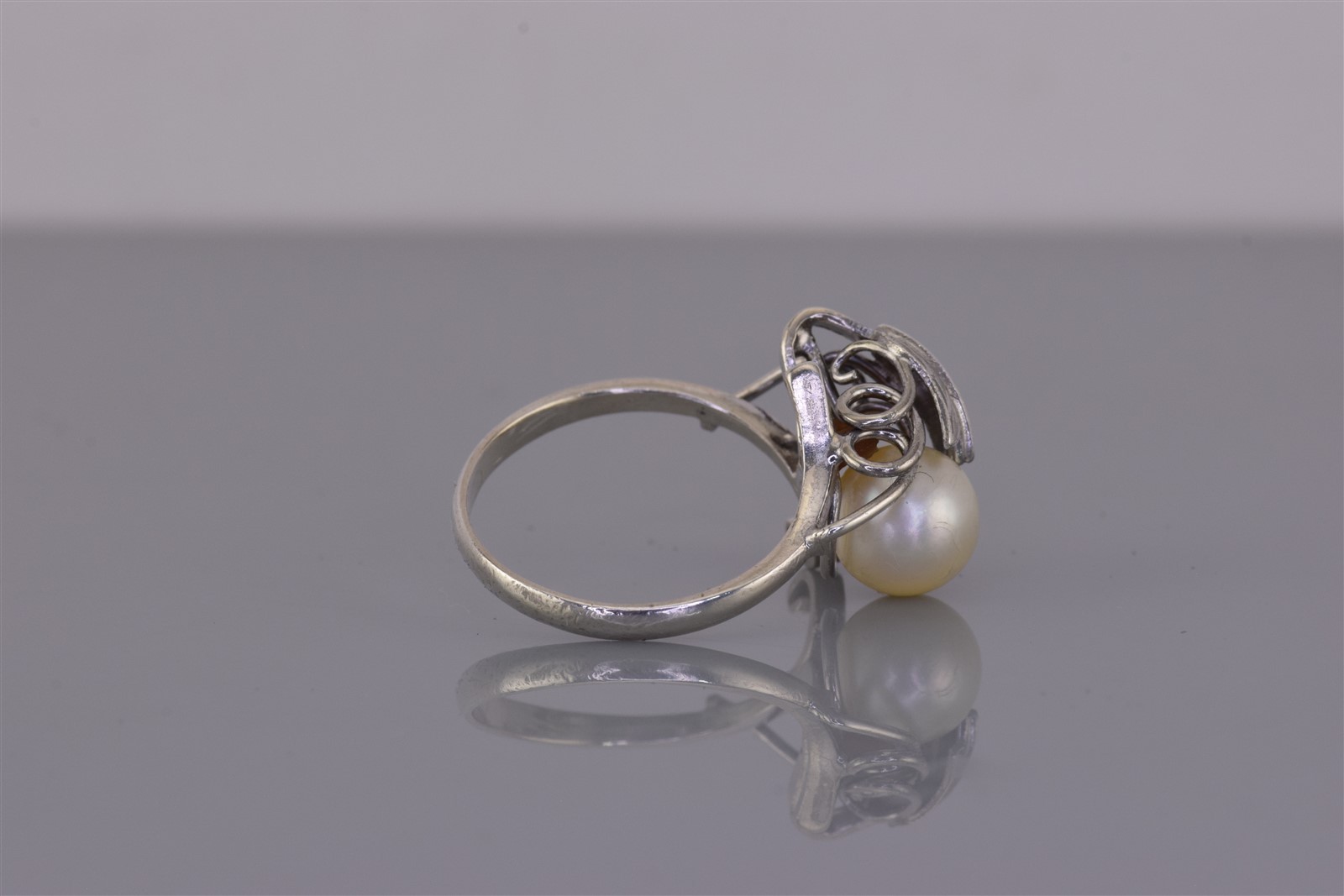 как выглядит Sterling Silver Nestled White Pearl Flower Swirled Bypass Band Ring 925 Sz: 8 фото