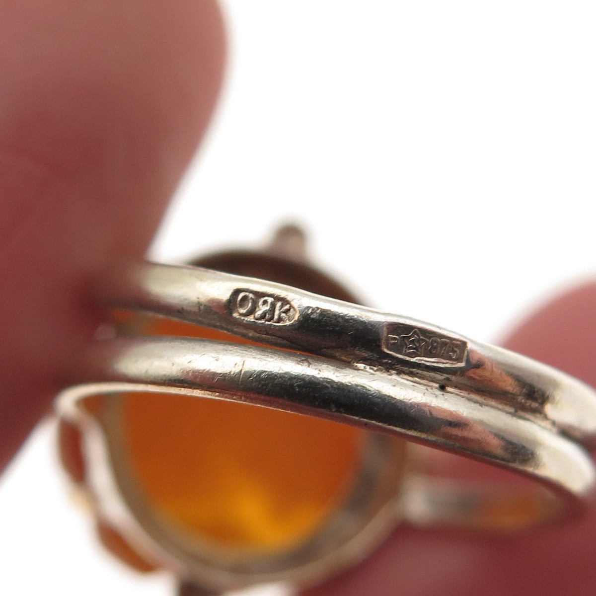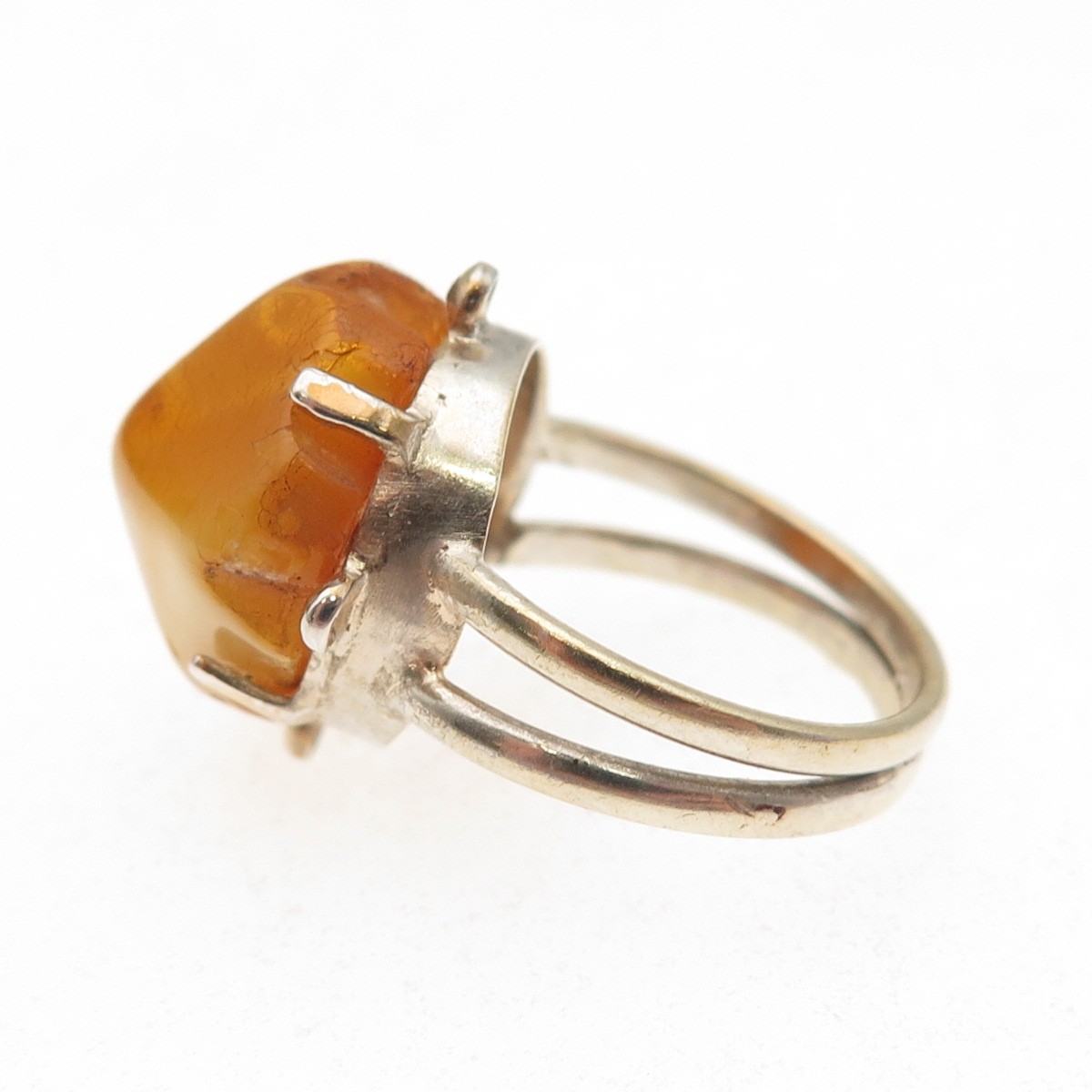 875 Silver Vintage European Real Amber Modernist Ring Size 4.5
