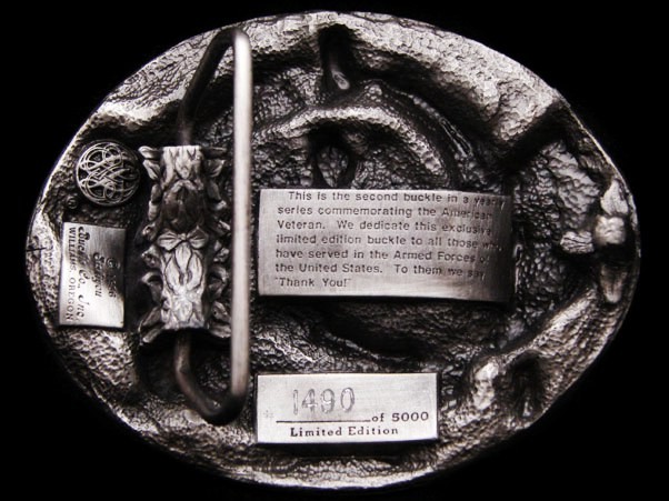 IL15118 NOS VINTAGE 1986 AMERICAN VETERAN COMMEMORATIVE PEWTER BELT BUCKLE