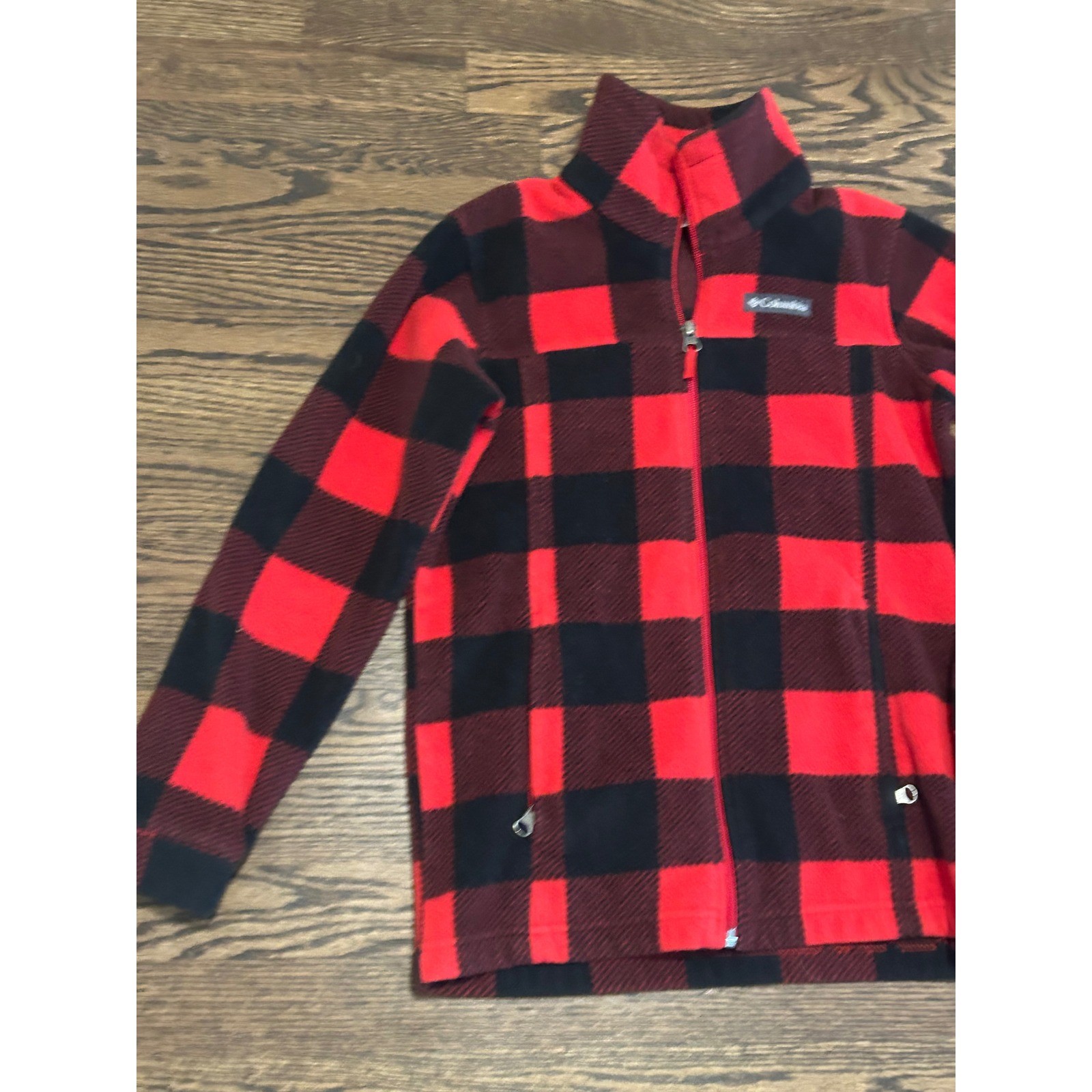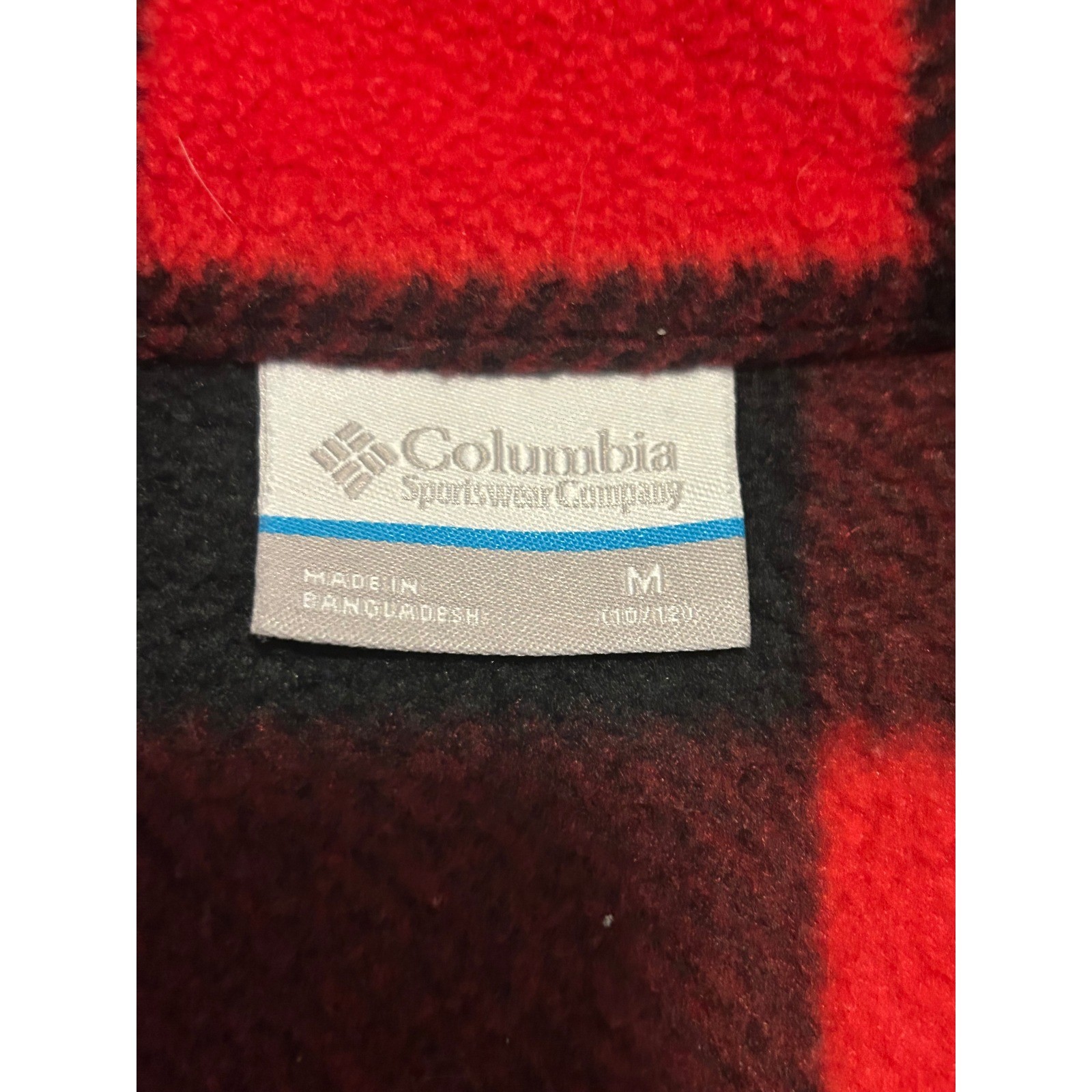 Columbia Kids Fleece Jacket Red Black Buffalo Plaid Zip Up Size M 10 12