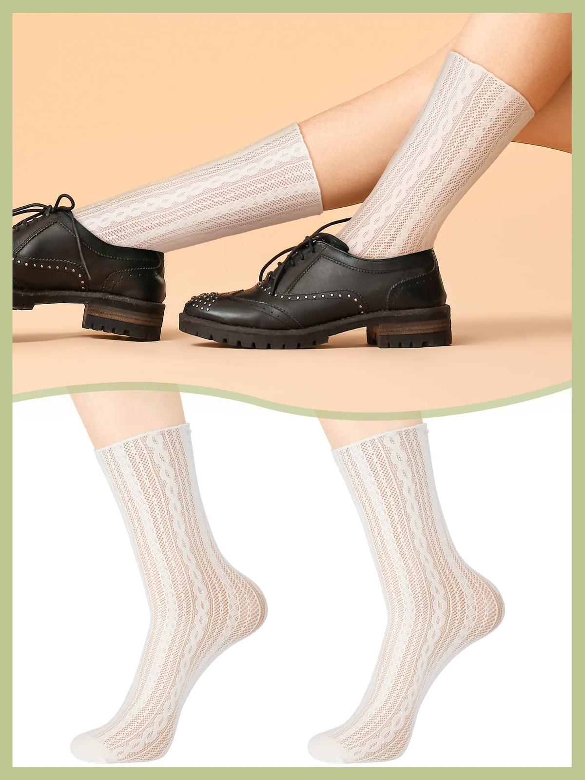 6 Pairs Women Lace Socks Mesh Sheer Ankle Socks Through Transparent Tulle Hig