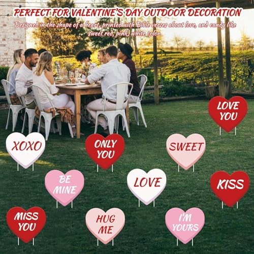 10 PCS Valentine's Day Heart Yard Signs with Stakes Candy Heart Conversation