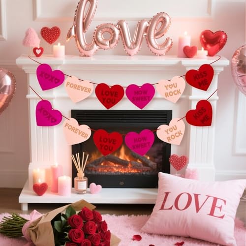 3 Pack Felt Heart Garland Banner NO DIY 6.3 x 5.7in Big Felt Hearts Valentines
