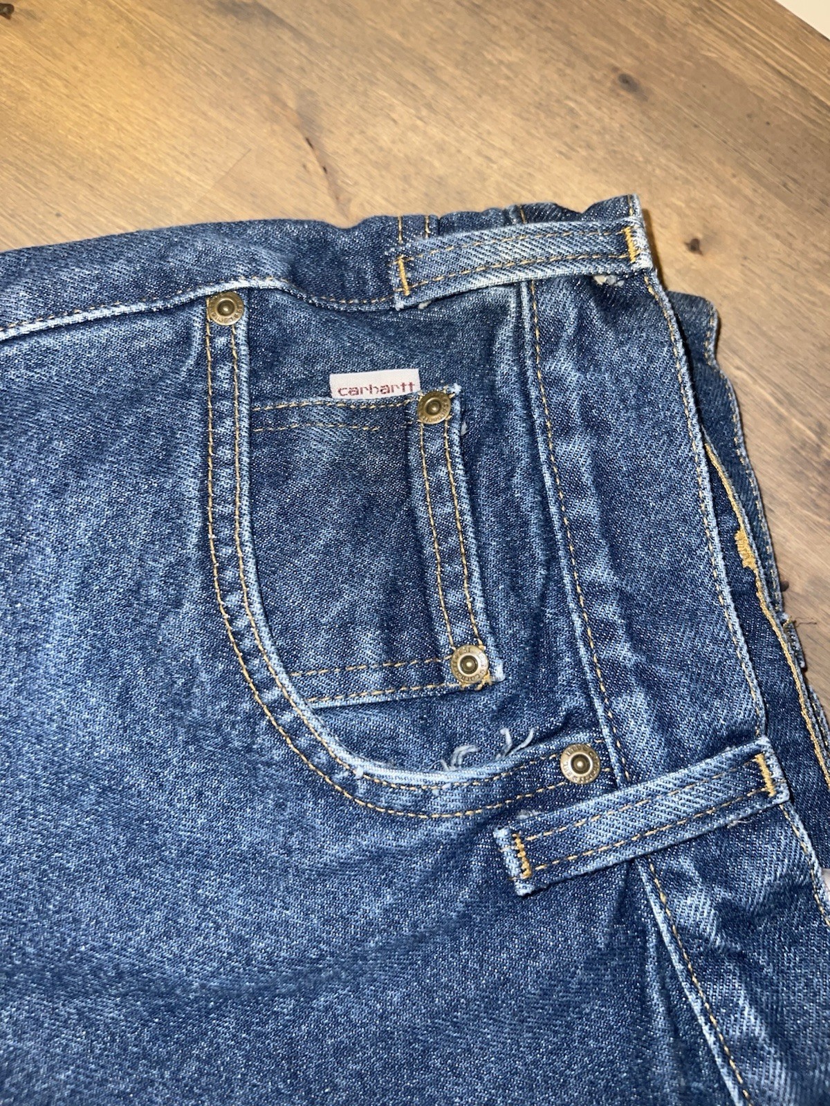 Carhartt Men's Blue Denim Straight Jeans Medium Wash Cotton 5-Pocket Design