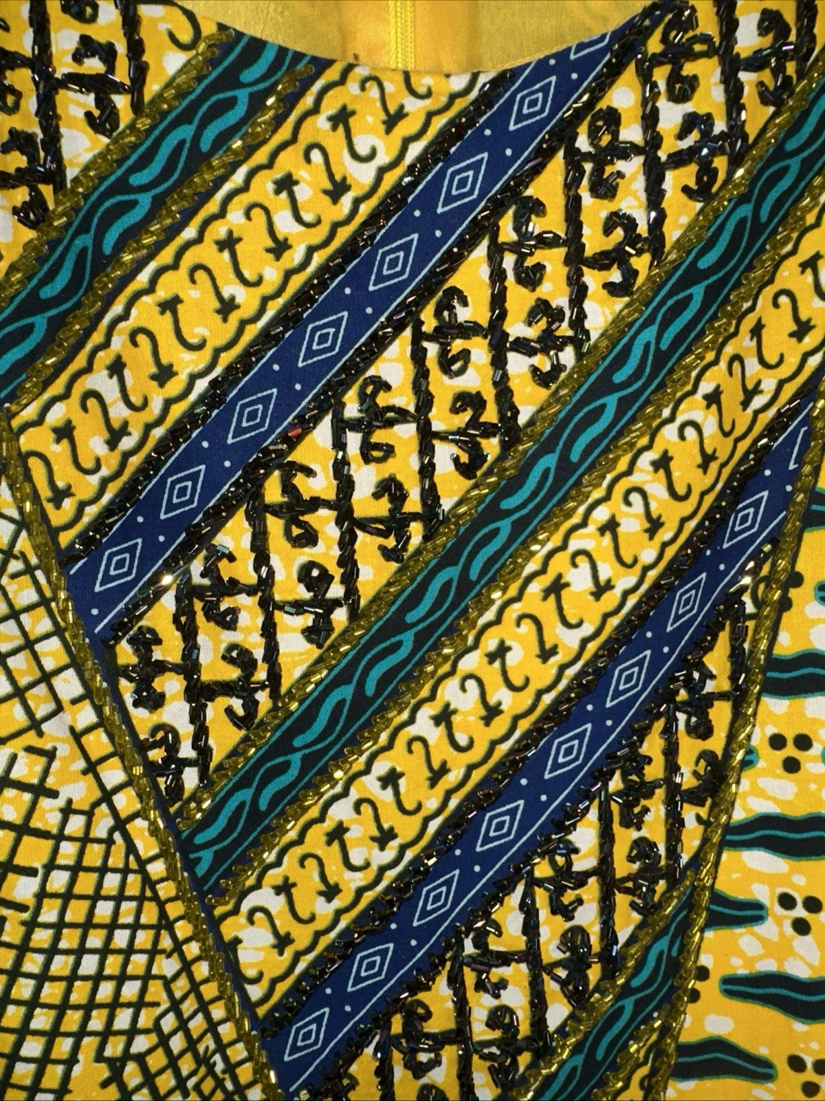 Women's African Print Modern Ankara Beaded Nigerian Women Kaftan Dress. Large