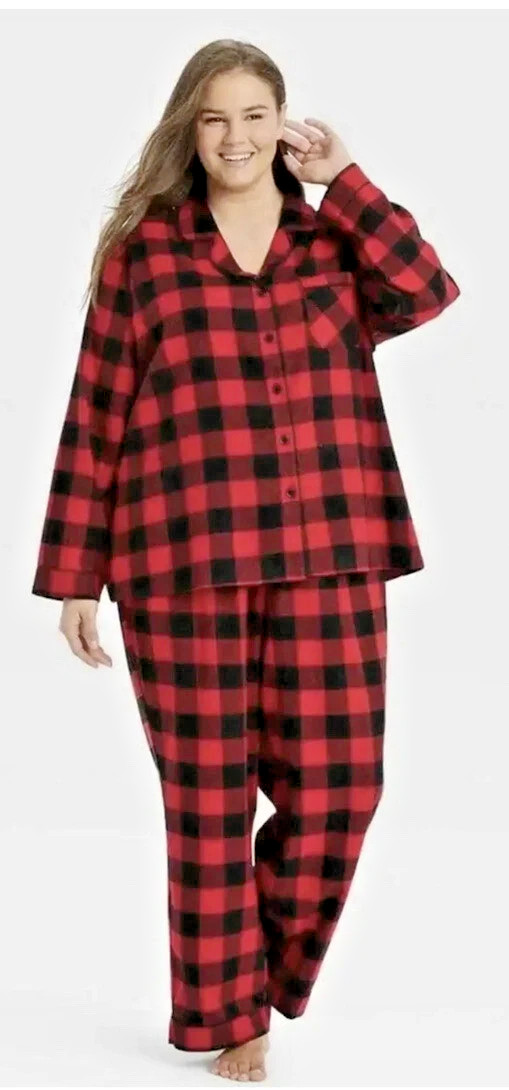 Wondershop Women s Pajama Set XXL Red Black Buffalo Plaid Button Up NWT
