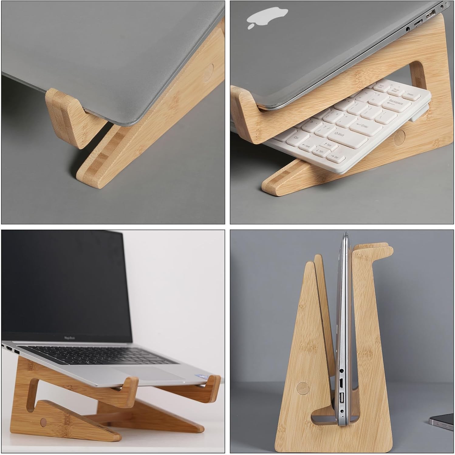 Wooden Vertical Laptop Stand for Desk, Bamboo Laptop Holder Compatible with MacB