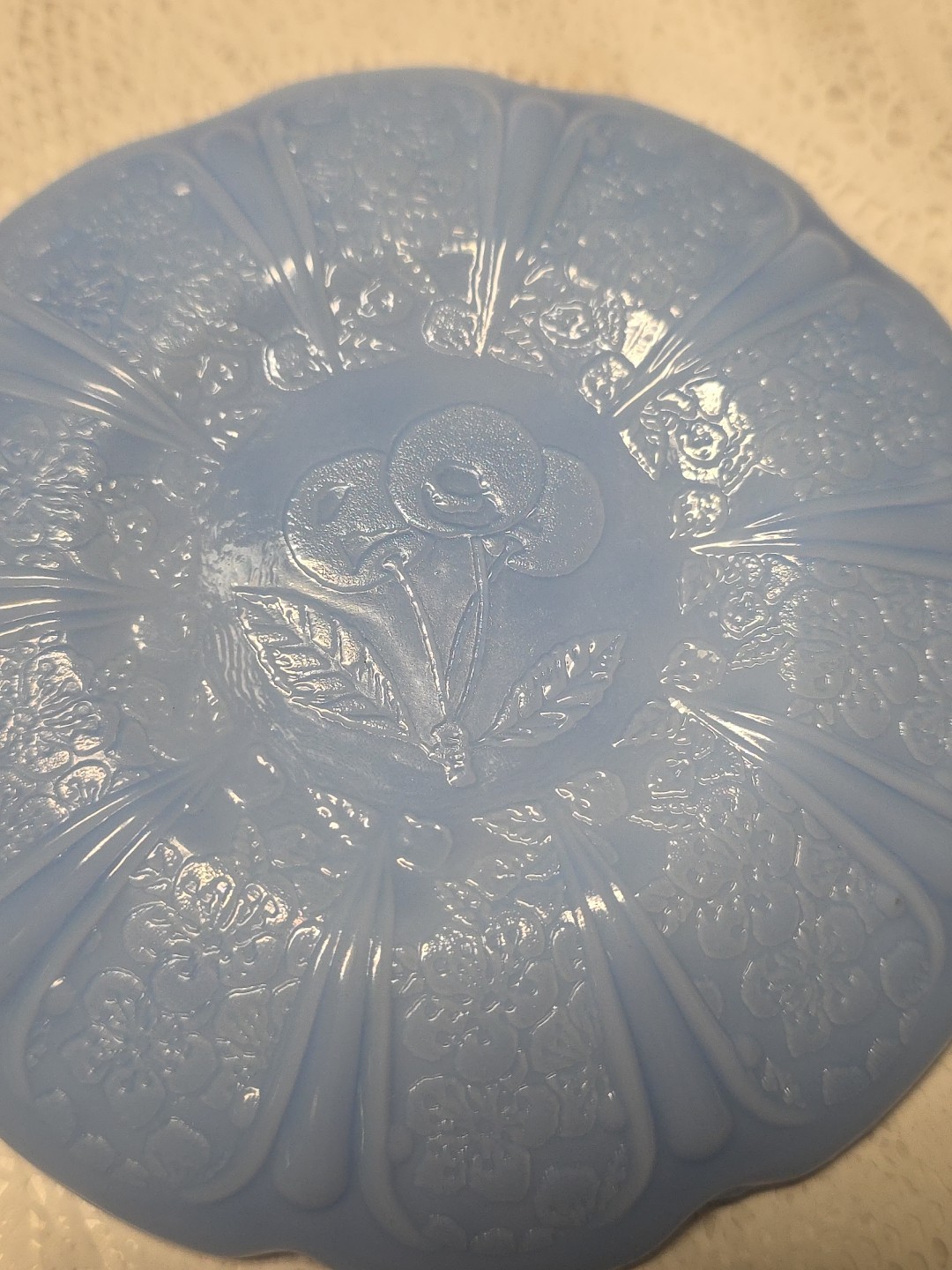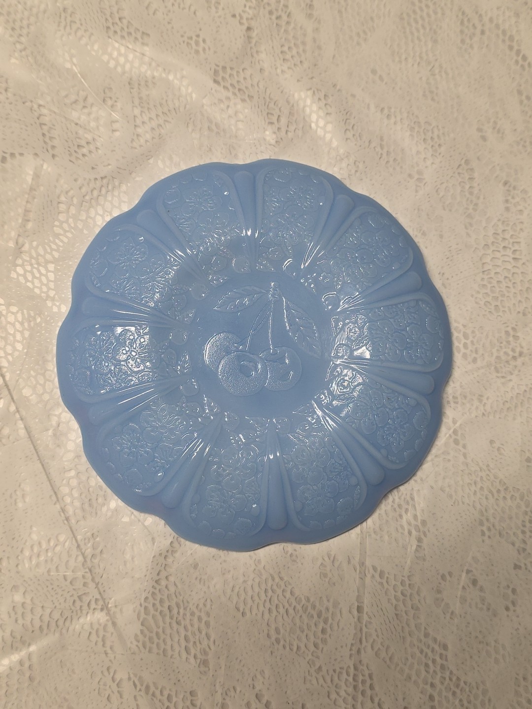 как выглядит Vintage Jeanette Blue Delphite Cherry Blossom One Saucer for Child