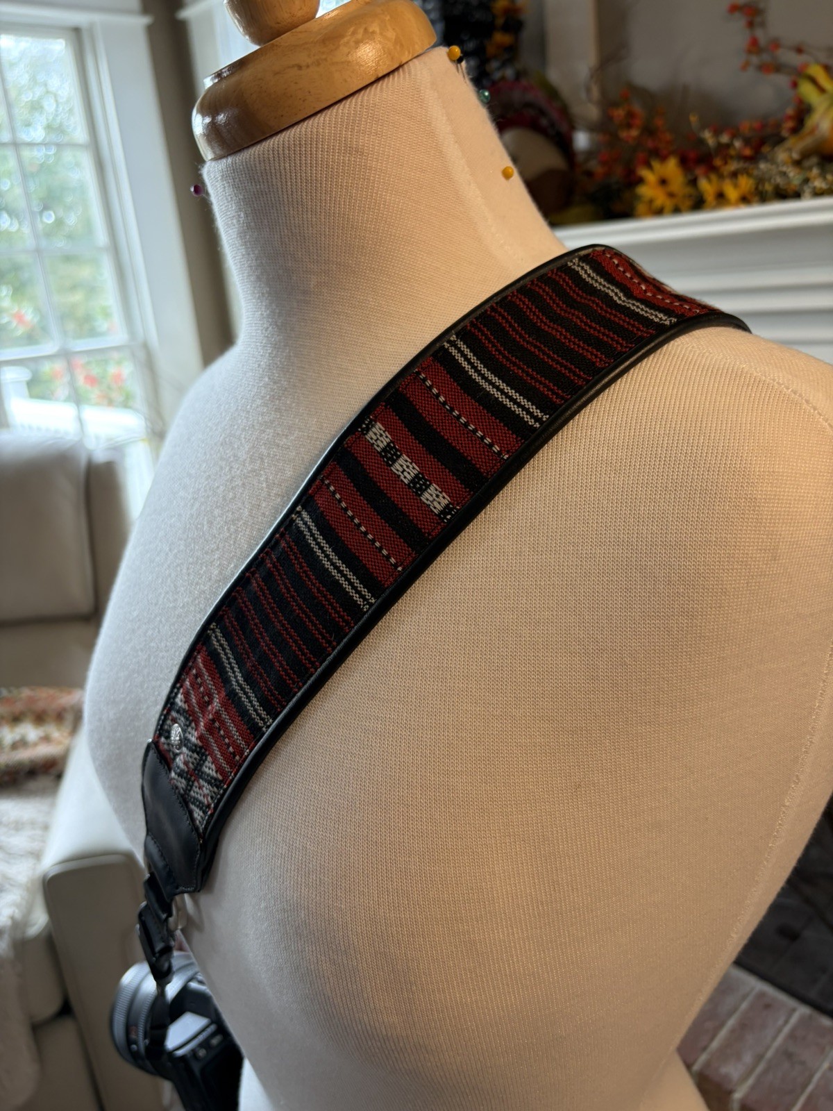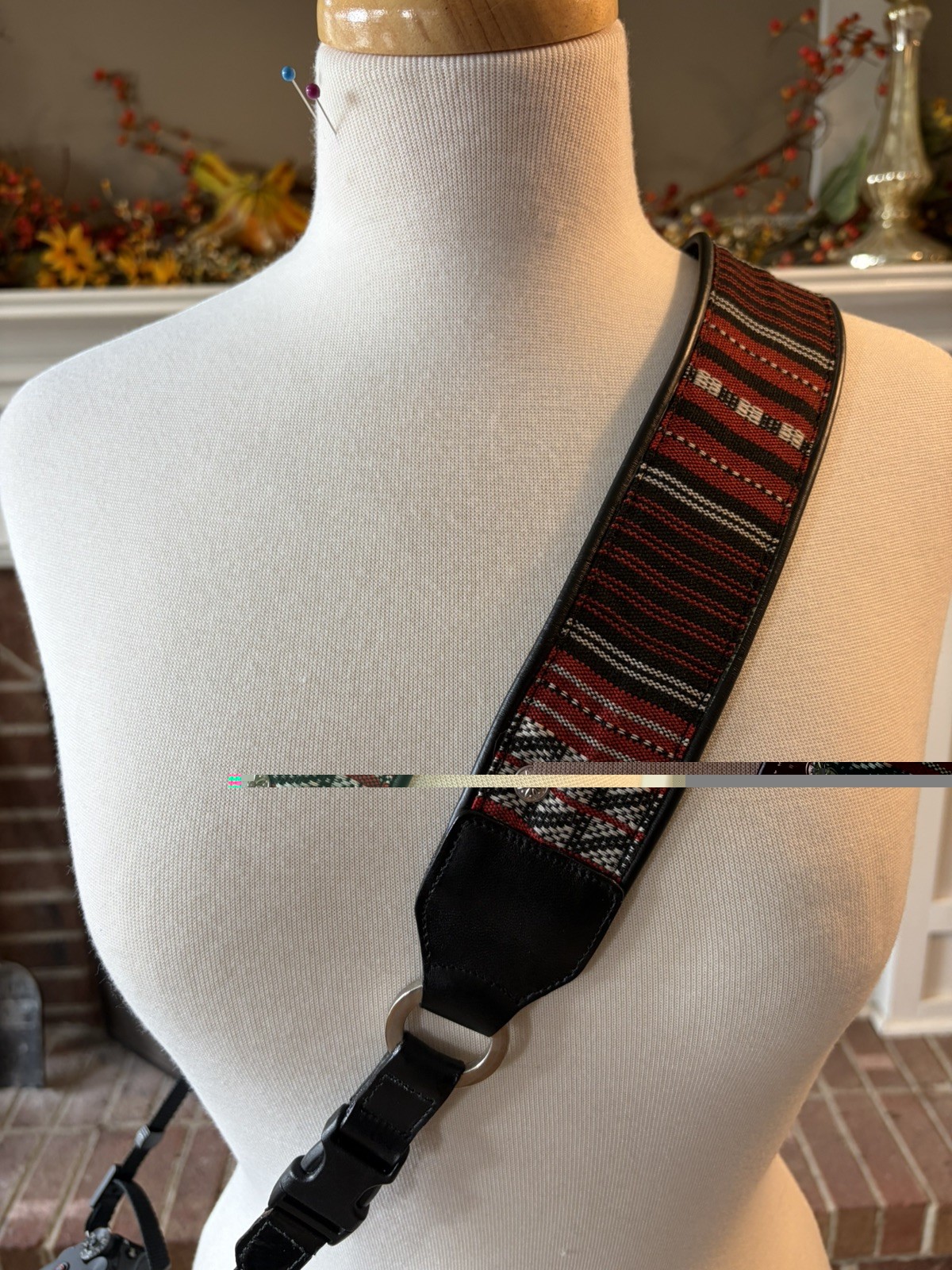 как выглядит The "Southwestern Sunset" Woven Camera Strap: Red Black Pattern, Vegan Leather фото