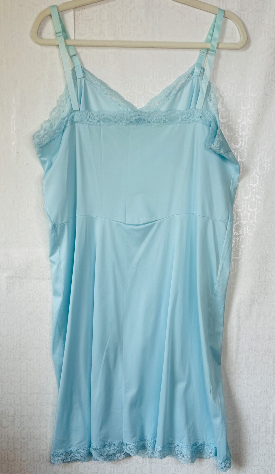 VTG PRETTY FORMFIT ROGERS BABY BLUE NYLON LACE TRIP FULL SLIP NIGHTGOWN 42 L/XL