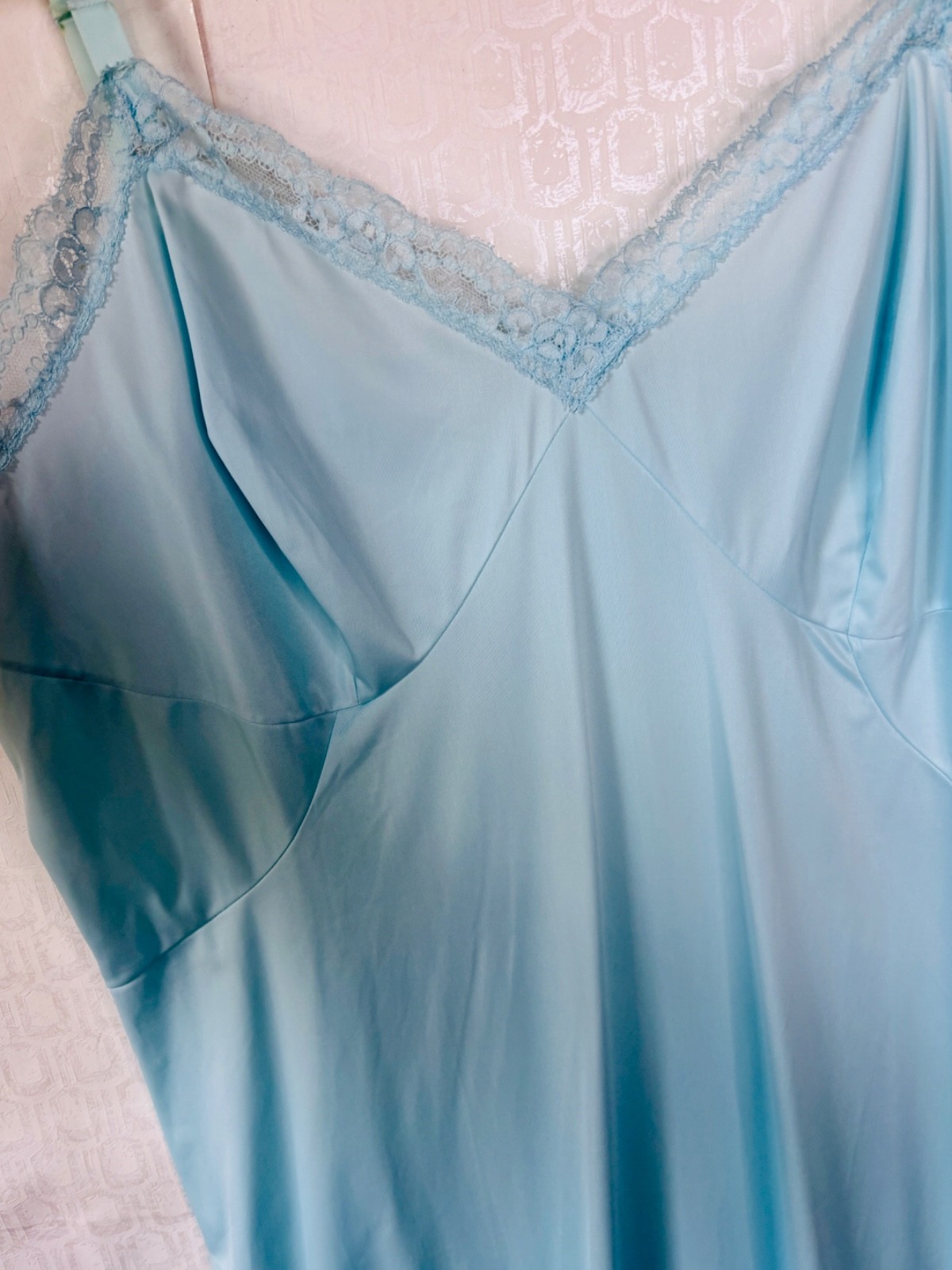 как выглядит VTG PRETTY FORMFIT ROGERS BABY BLUE NYLON LACE TRIP FULL SLIP NIGHTGOWN 42 L/XL фото