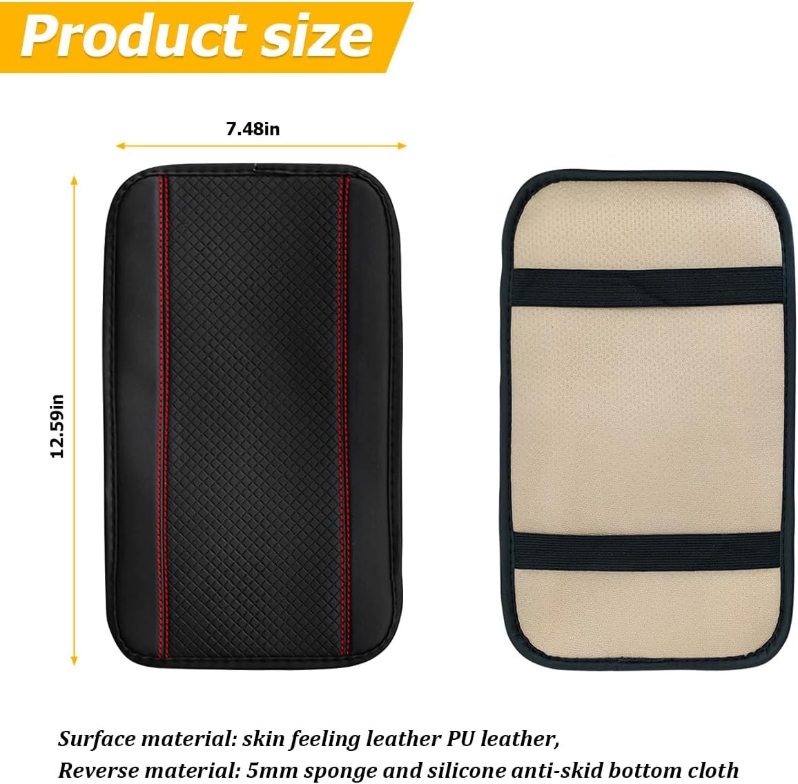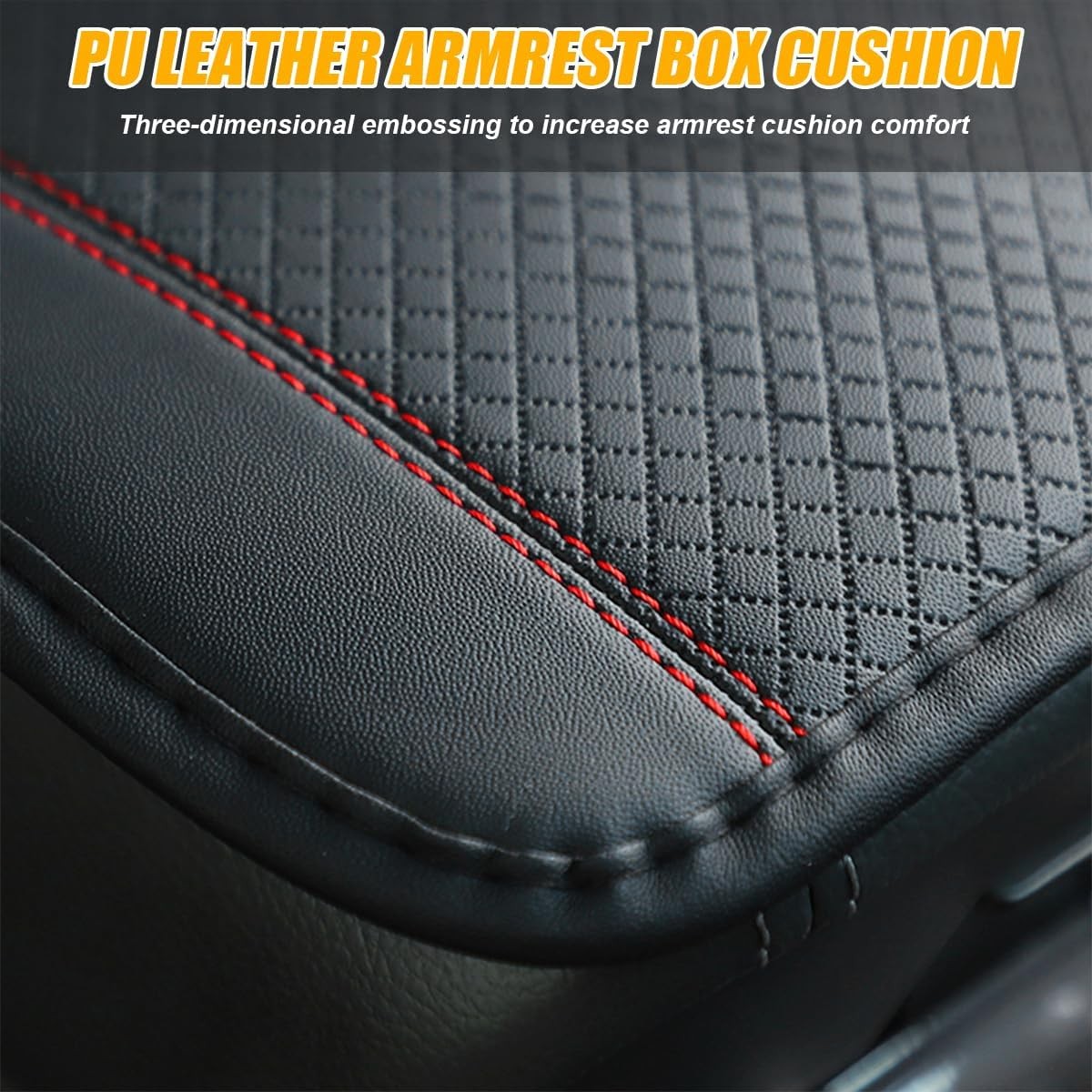Car Armrest Seat Box Cover, Comfortable Leather Automotive Center Black/Red