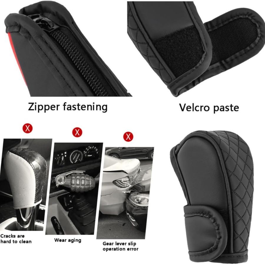 Gear Shift Knob Cover PU Leather Car Stick Shift Knob Cover Universal Fit Beige