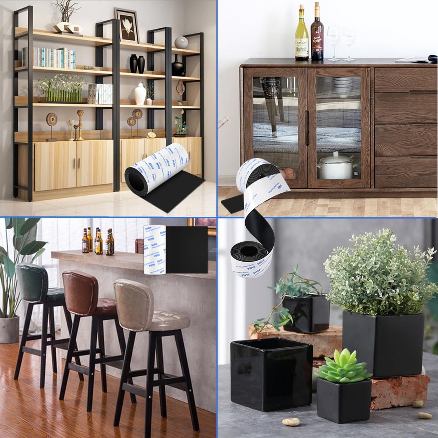 Non Slip Furniture Pads, 2 Rolls Rubber Adhesive Pads, Adhesive Rubber Pads f...