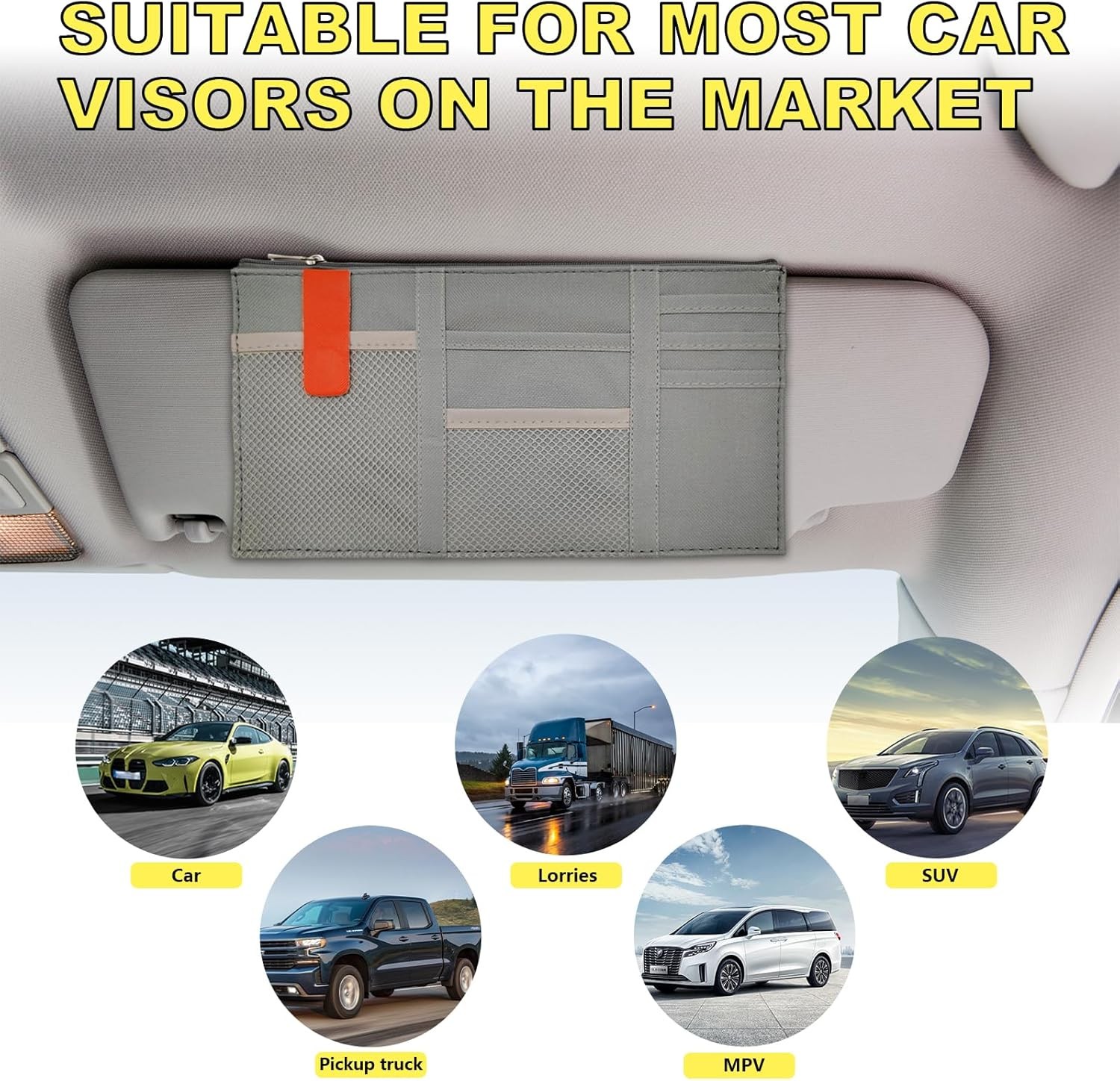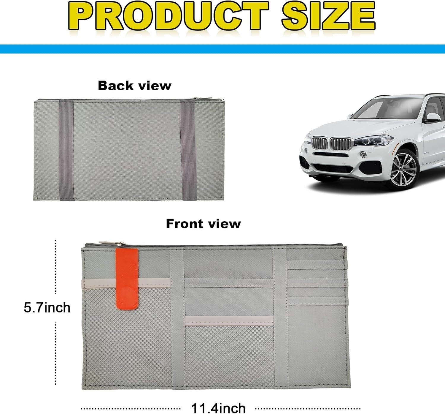 Car Sun Visor Organizer, Oxford Cloth Multi-Pocket Storage Holder with Zipper, A