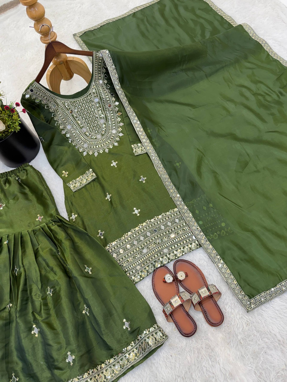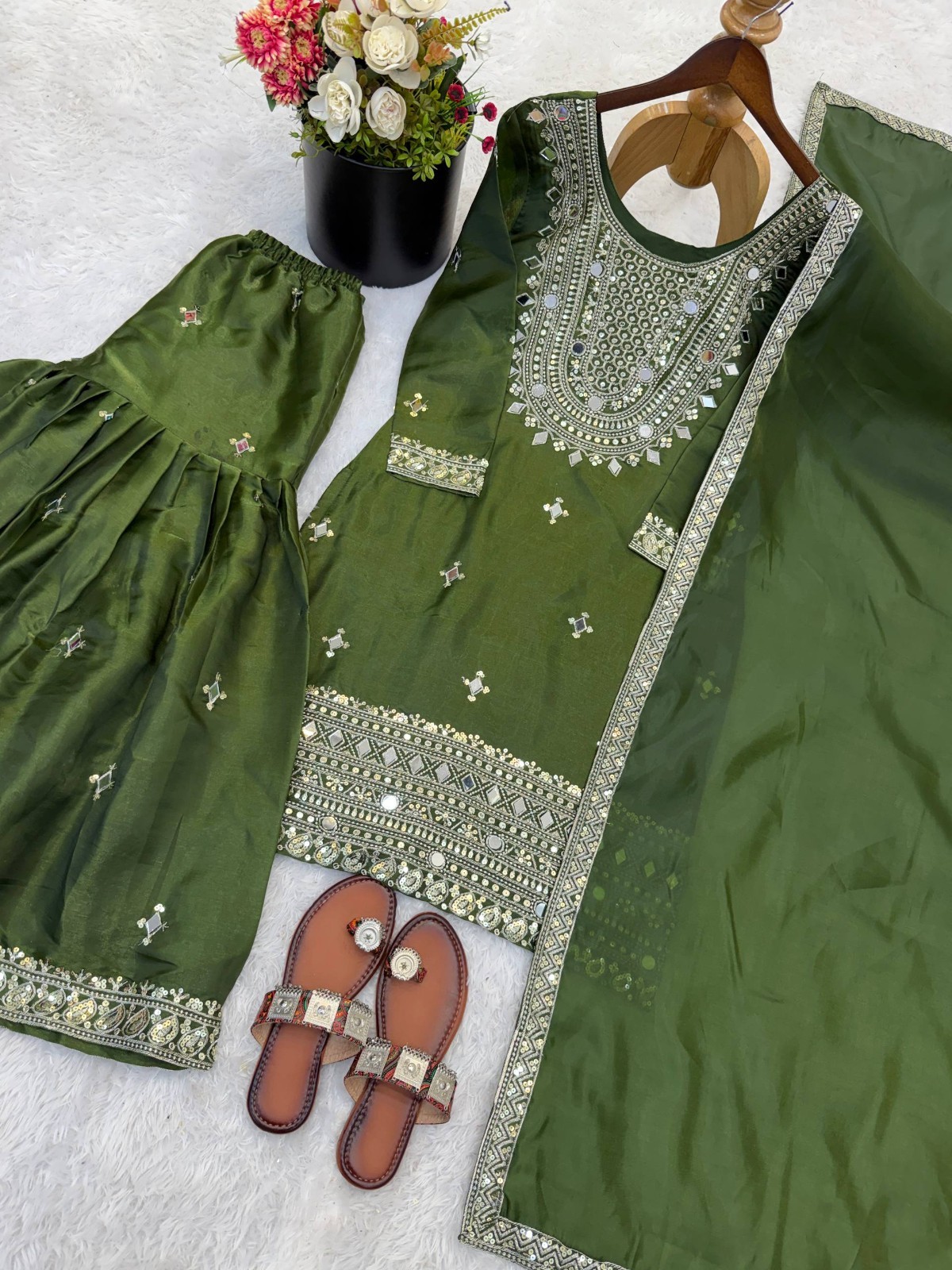 Palazzo Work: Embroidery Sequence And Real Mirror Work