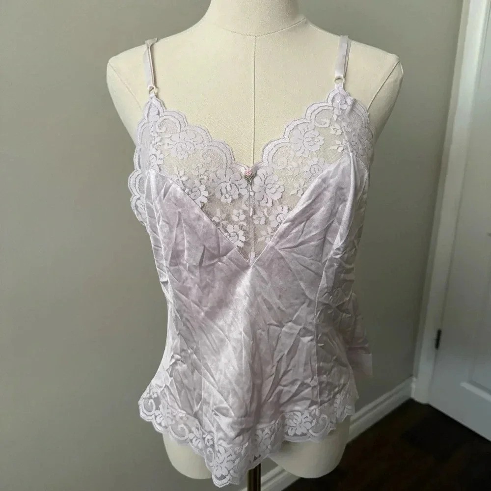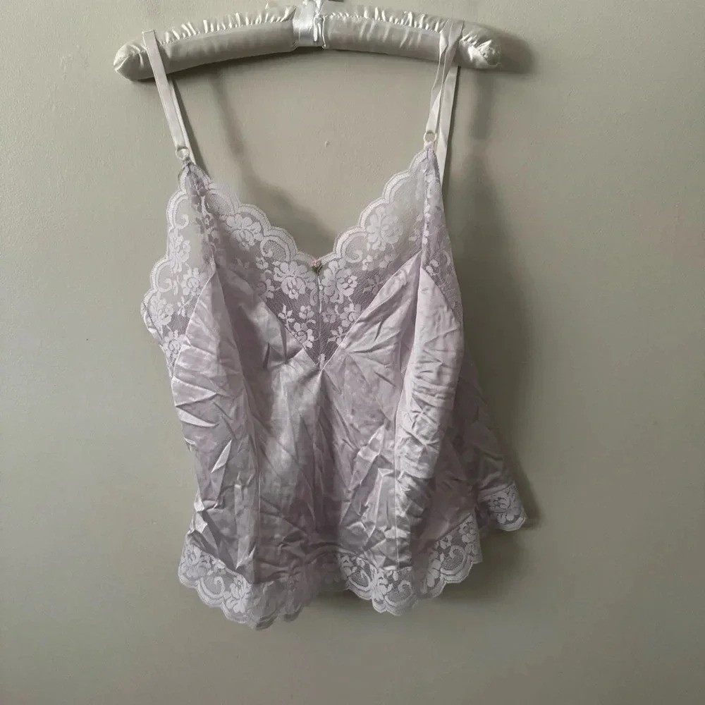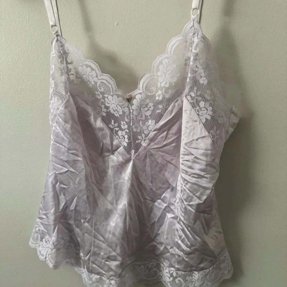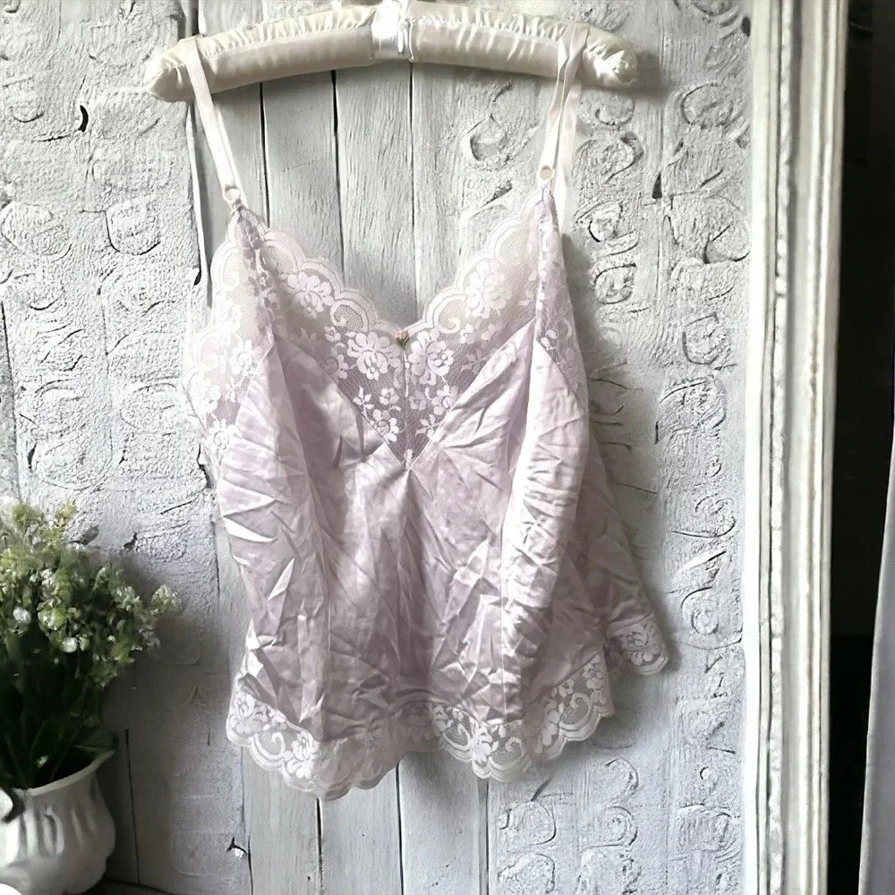 как выглядит Vintage Satin Lace Camisole Lavender Lilac Top Romantic Coquette Slip Tank фото