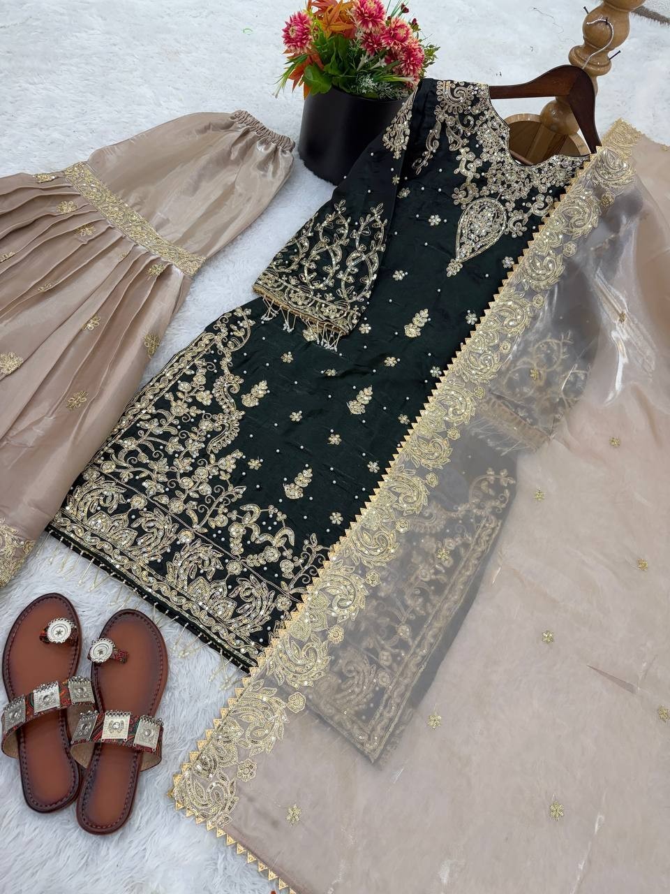 New Designer Heavy Silk Black Top Palazzo With Dupatta For Function Wear