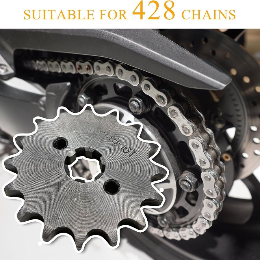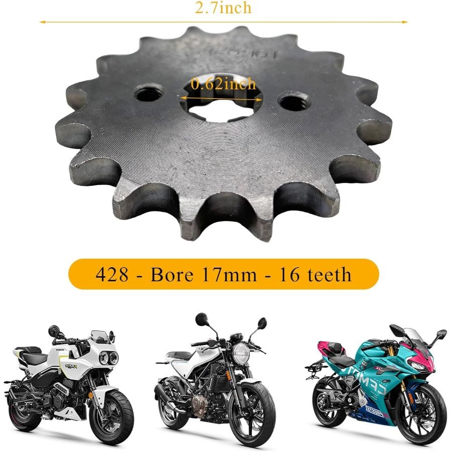 • Front Engine Sprocket, 428-16T 17mm Mini Bike ATV Sprocket with Washer 2 Bolts