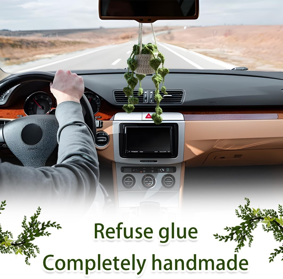 как выглядит Car Mirror Hanging Ornament, Crochet Plant for Automotive Rear View Mirror Hangi фото