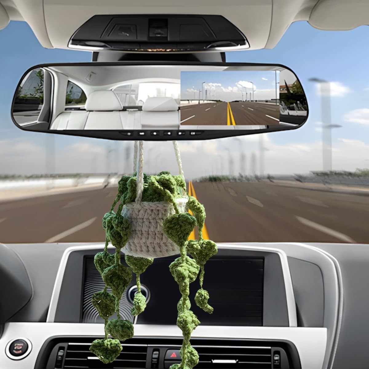 Car Mirror Hanging Ornament, Crochet Plant for Automotive Rear View Mirror Hangi