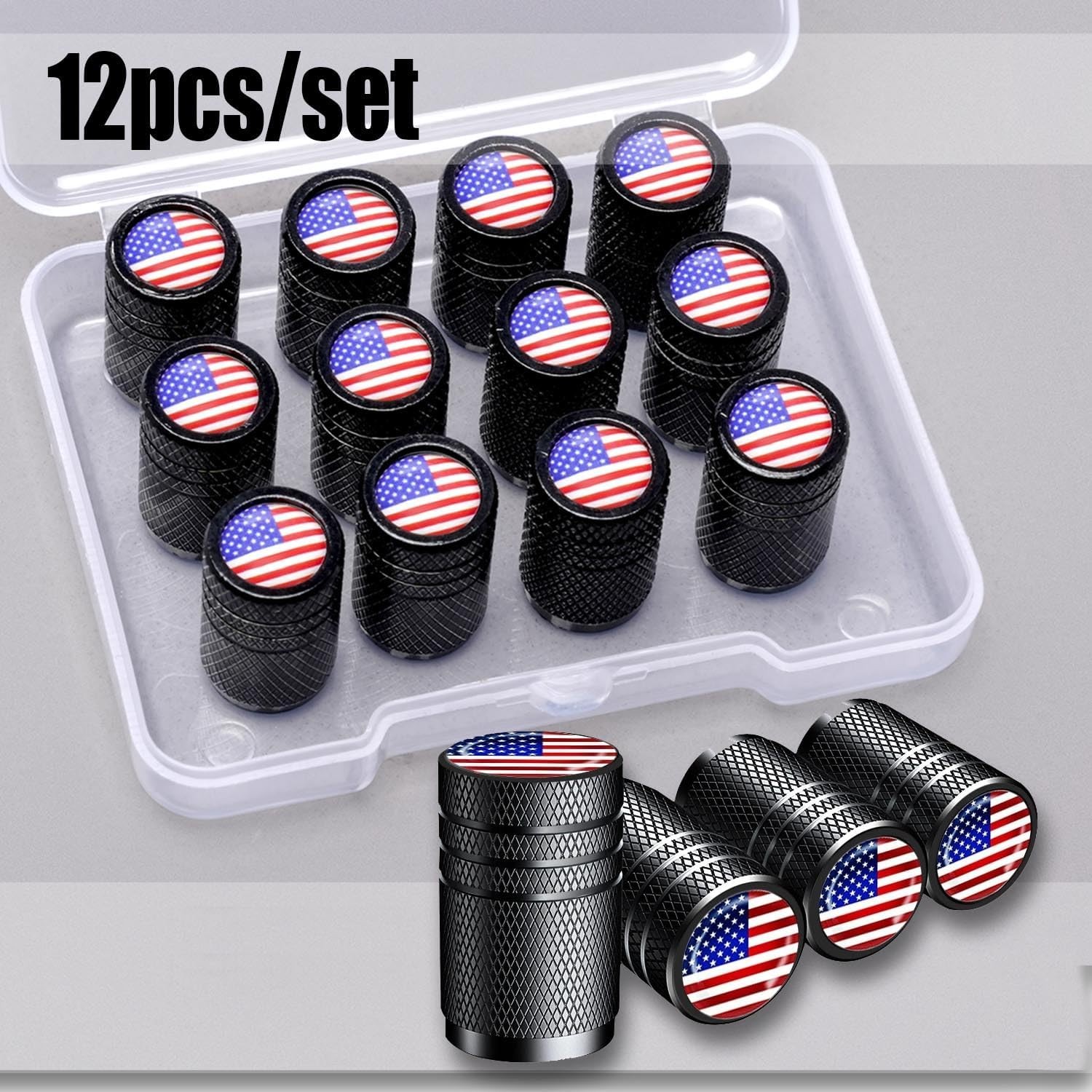 • American Flag Tire Valve Stem Caps, Aluminum Caps Black,Black USA 12 Pack