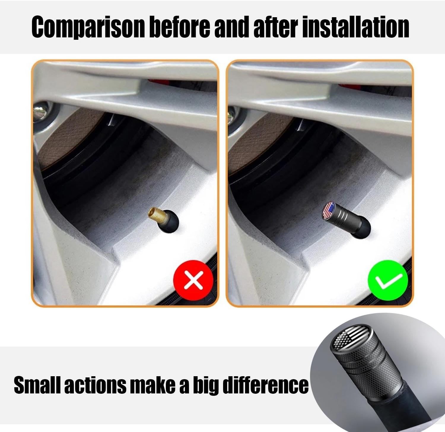 как выглядит American Flag Tire Valve Stem Caps, Aluminum Caps Black,Black USA 12 Pack фото