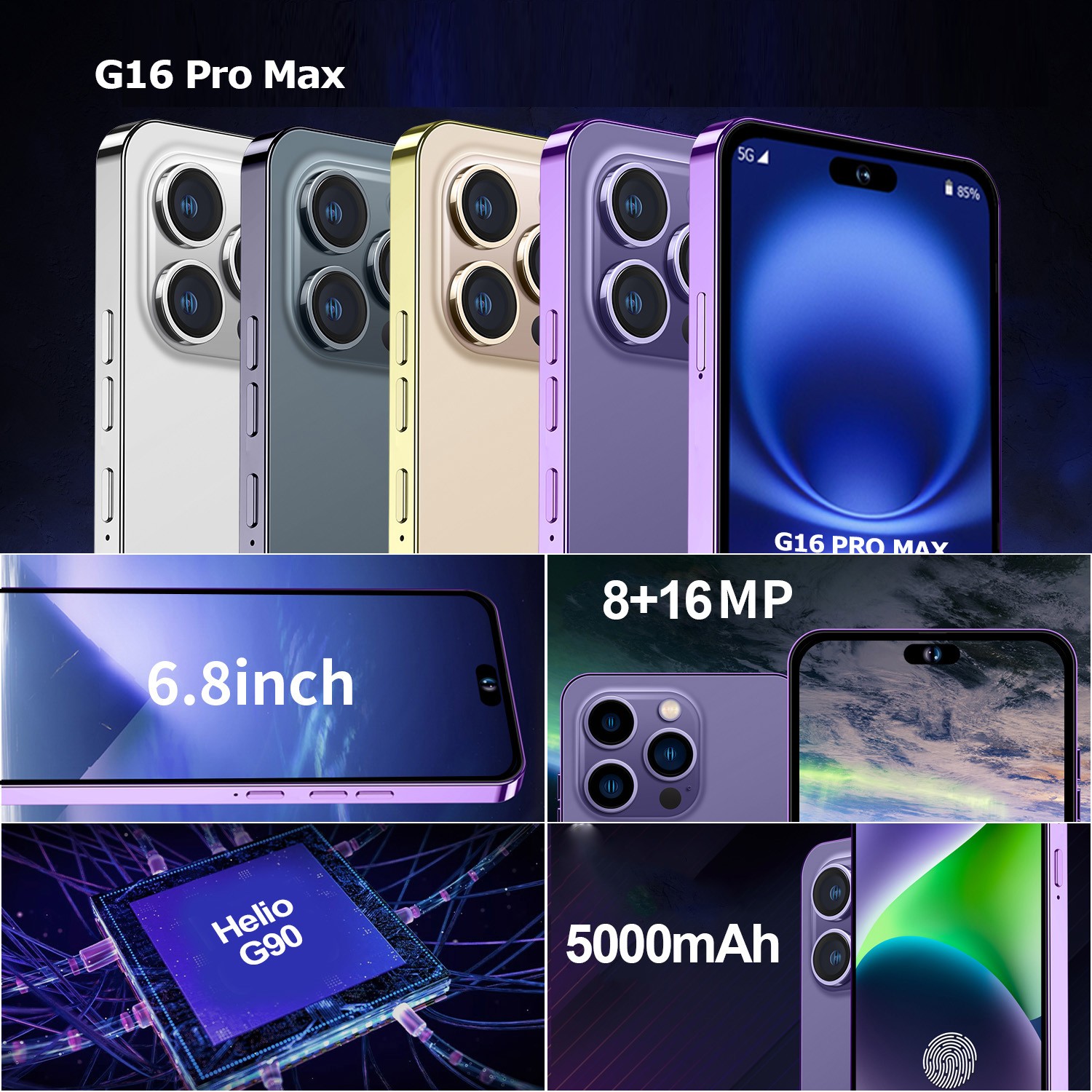 G16 Pro Max 5G Unlocked Cell Phone 128GB Smartphone Android Cheap Phone 5000mAh