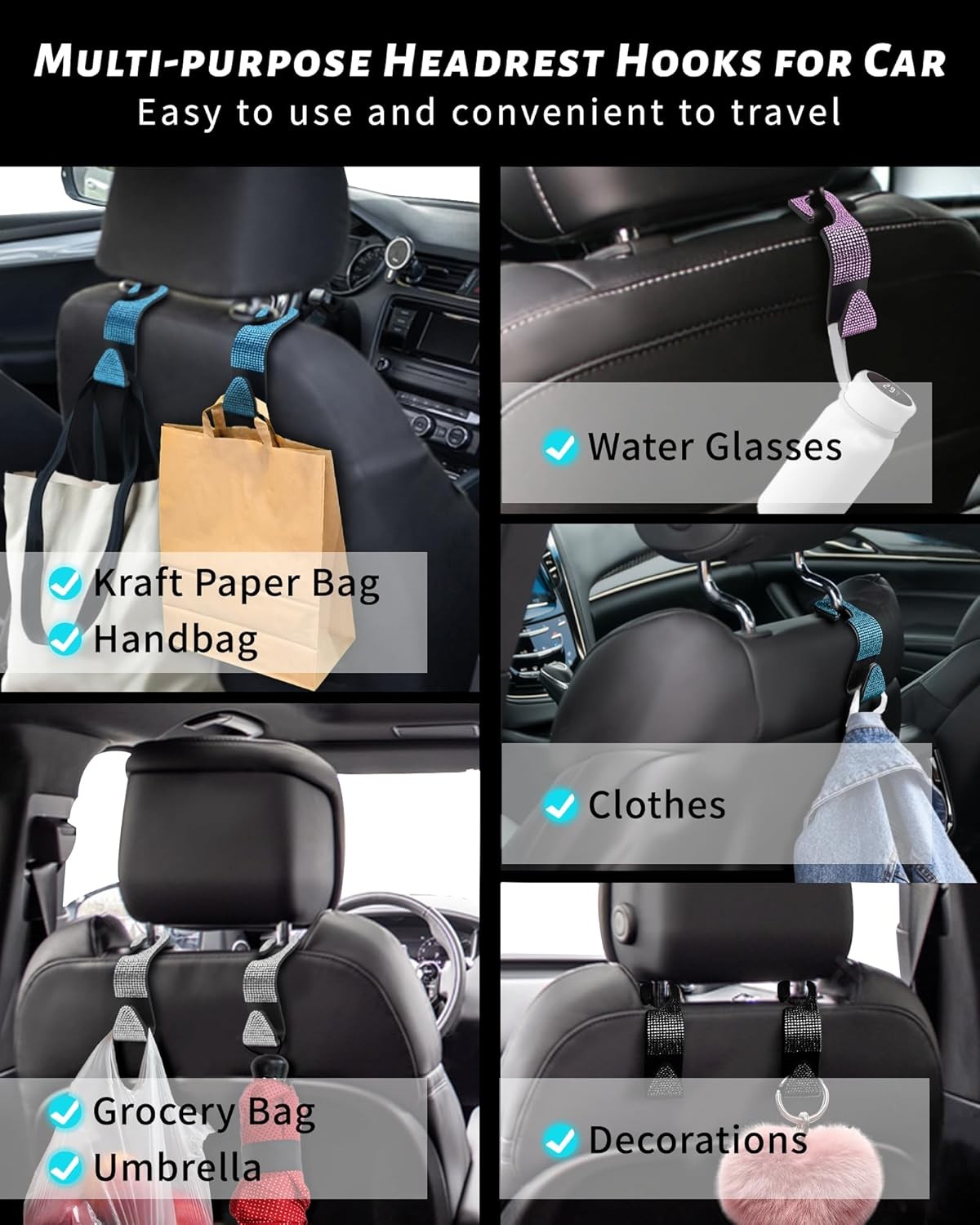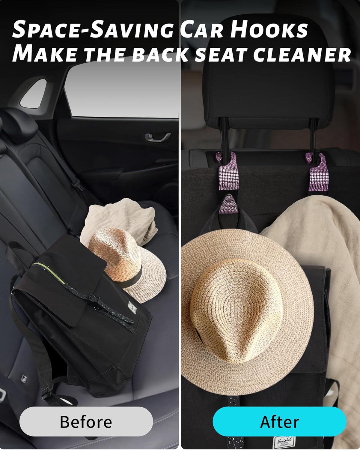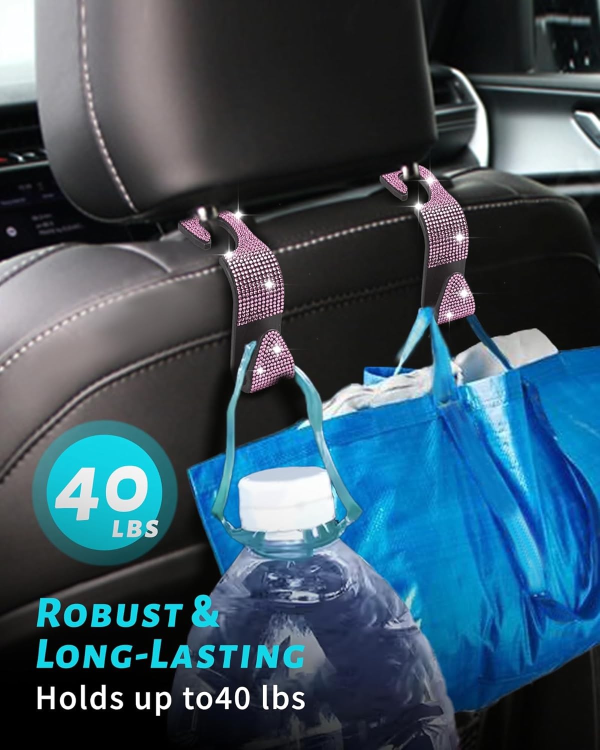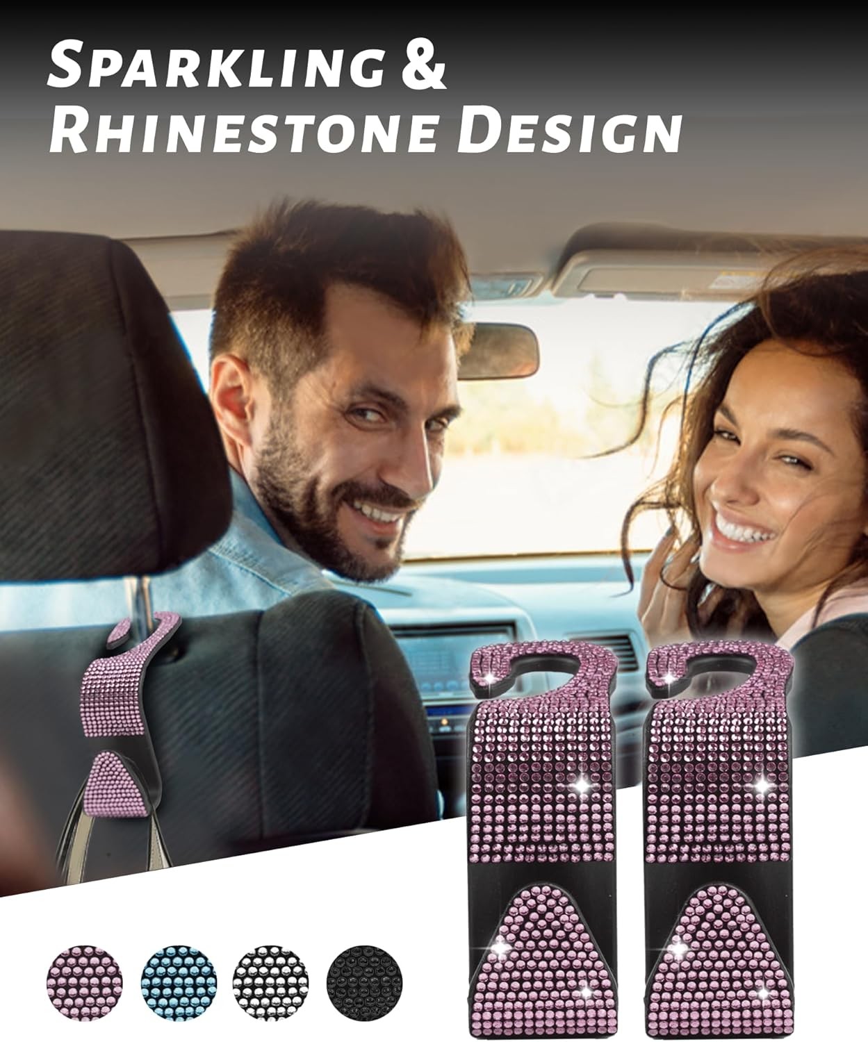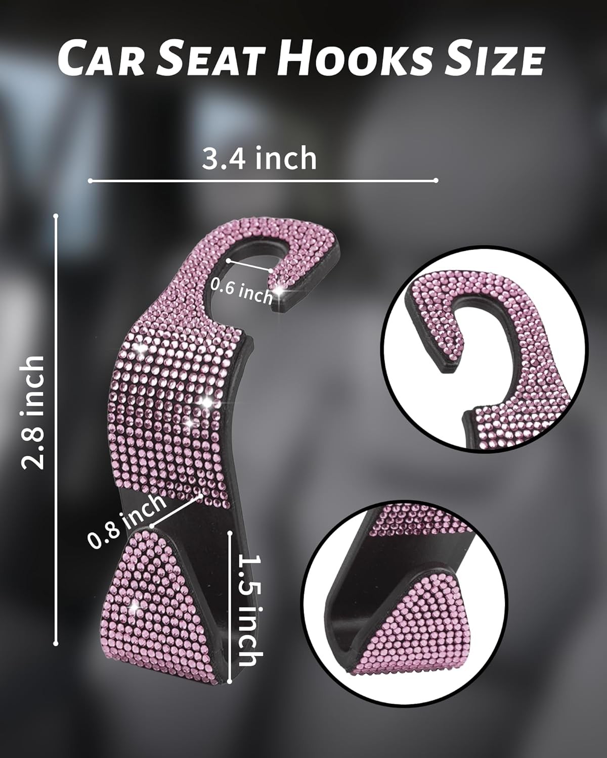 Sparkling Car Seat Hooks, 4 Pack, Pink Purse Holder for Headrest,Pink Diamond