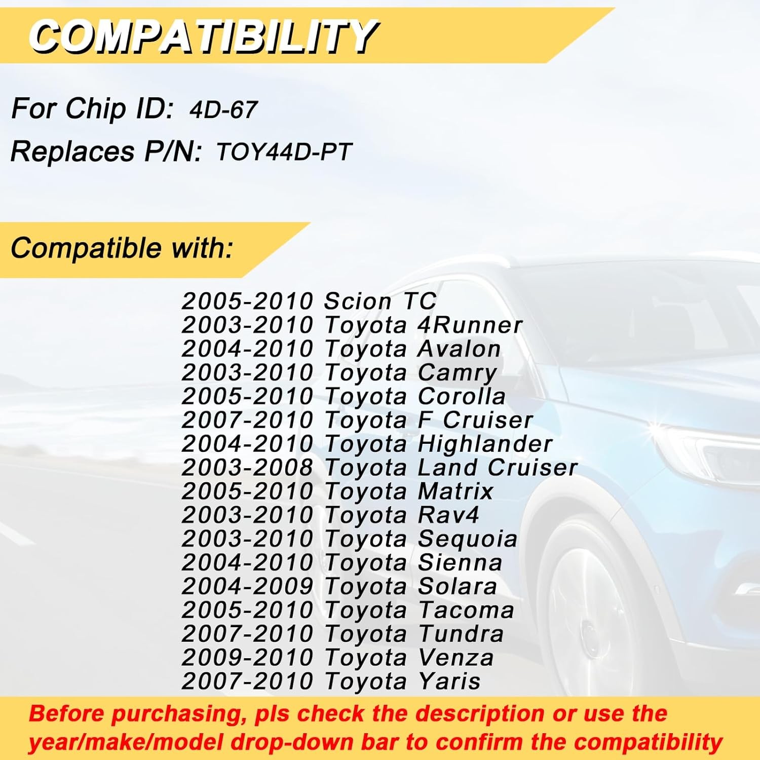 4D-67 TOY44D-PT Chip Transponder Ignition Car Key Replacement for 2003-2010 4Run