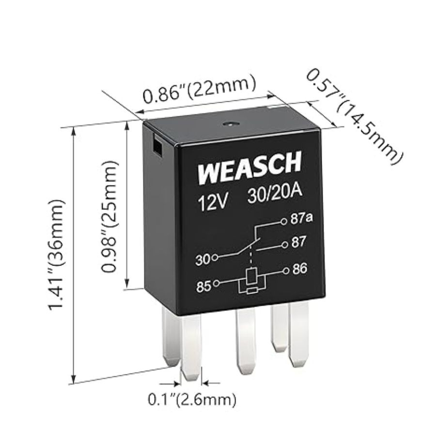 2 Pack 5-Pin High Power Relay, DC 12V 30A, Multi-Purpose Relay Fuel Pump Relays