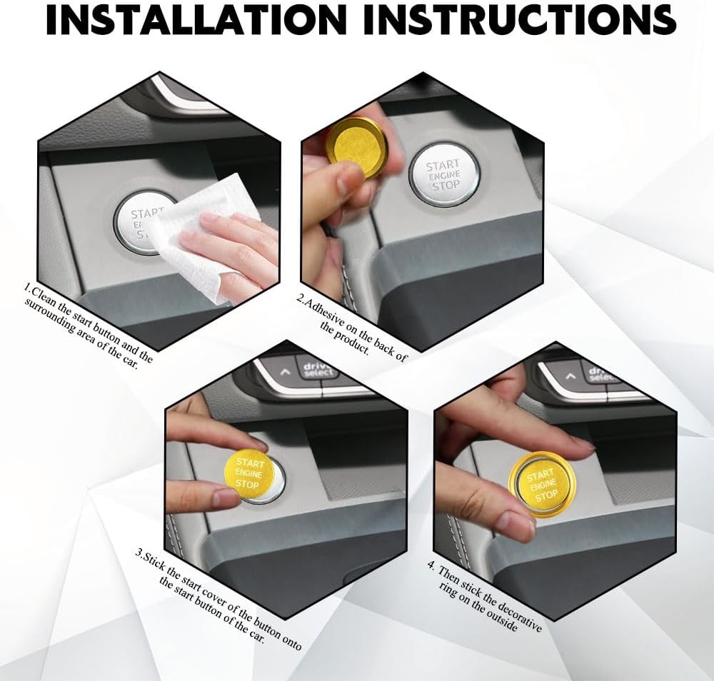 Push Start Button Cover, Ignition Switch Button, Engine Push Start Stop Gold