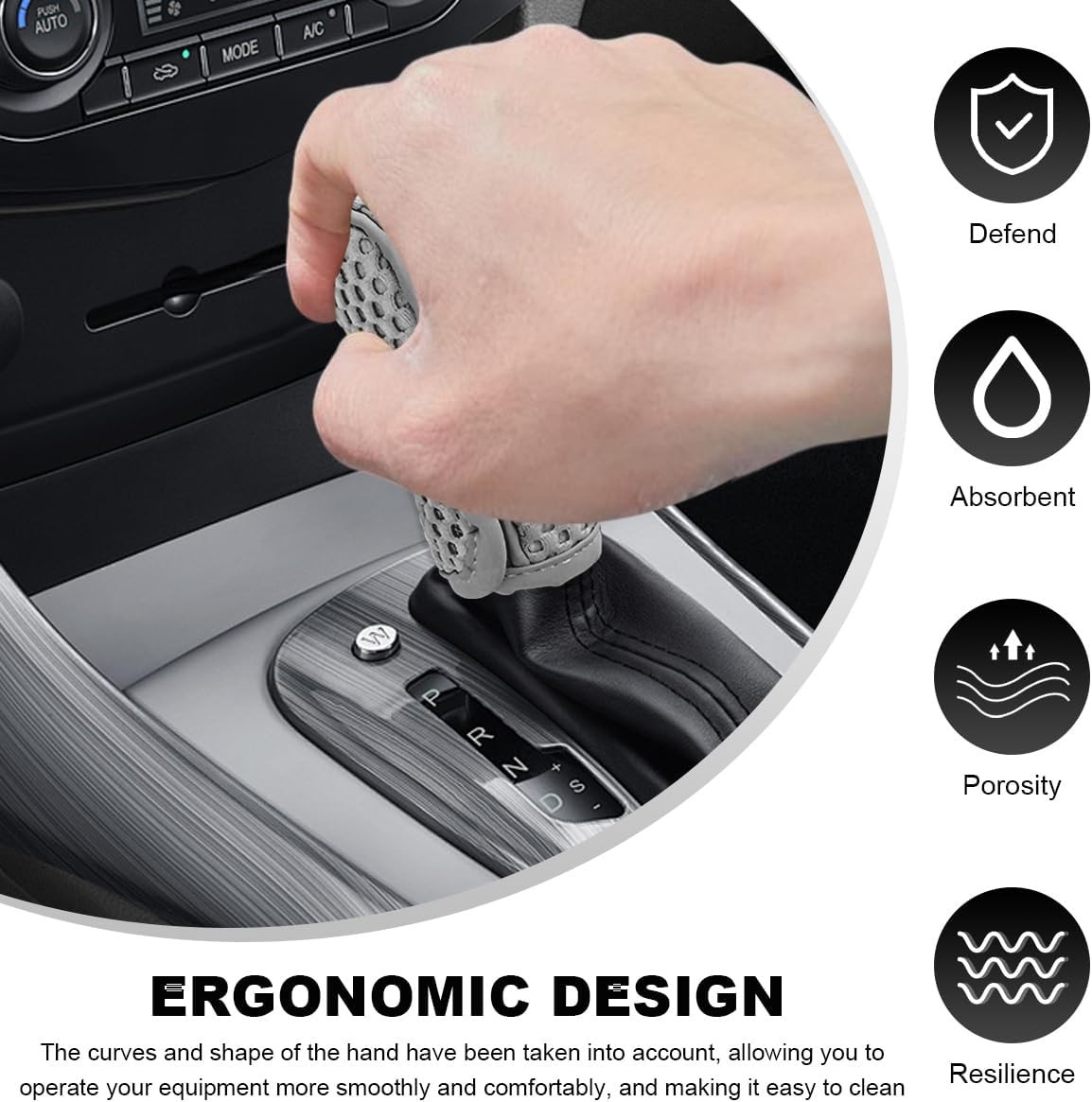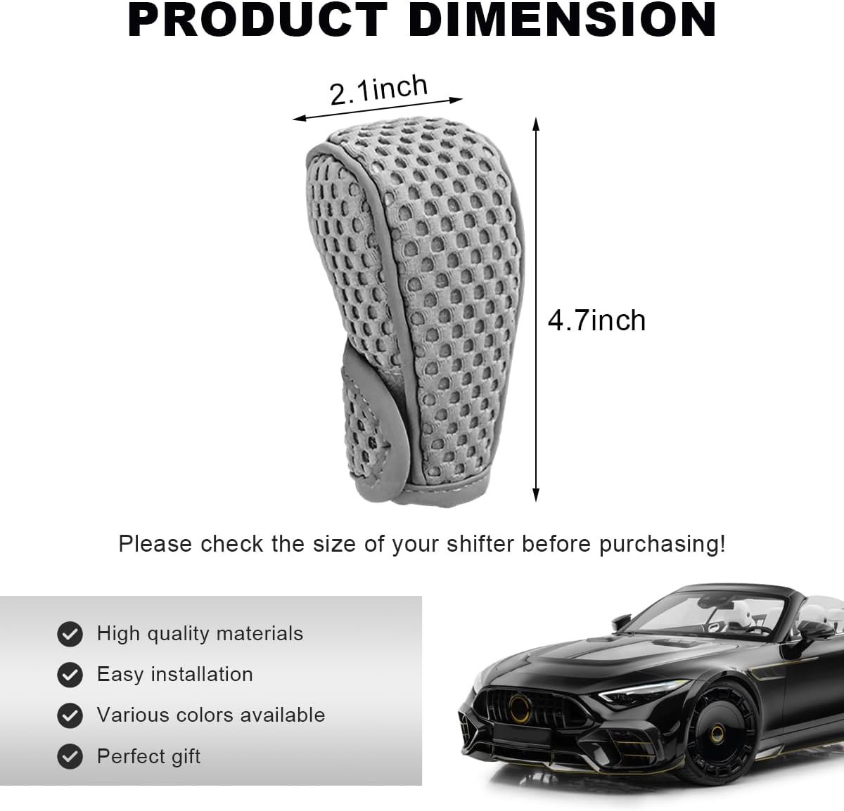 • Gear Shift Knob Cover, Anti-Slip Breathable Automotive Manual Stick Shift Gray