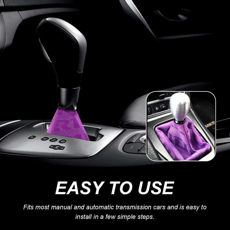 • Car Shift Boot Cover, Fabric Shifter Lever Knob Boot Dustproof Cover with Purple