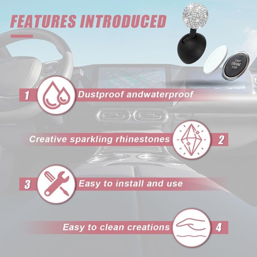 Push Start Button Cover, Rhinestone Engine Start Stop Button Joystick White