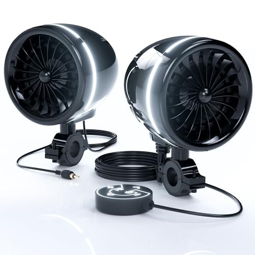 Bluetooth Motorcycle Speakers with LED Ring, 4 Waterproof AJ4-Halo Black