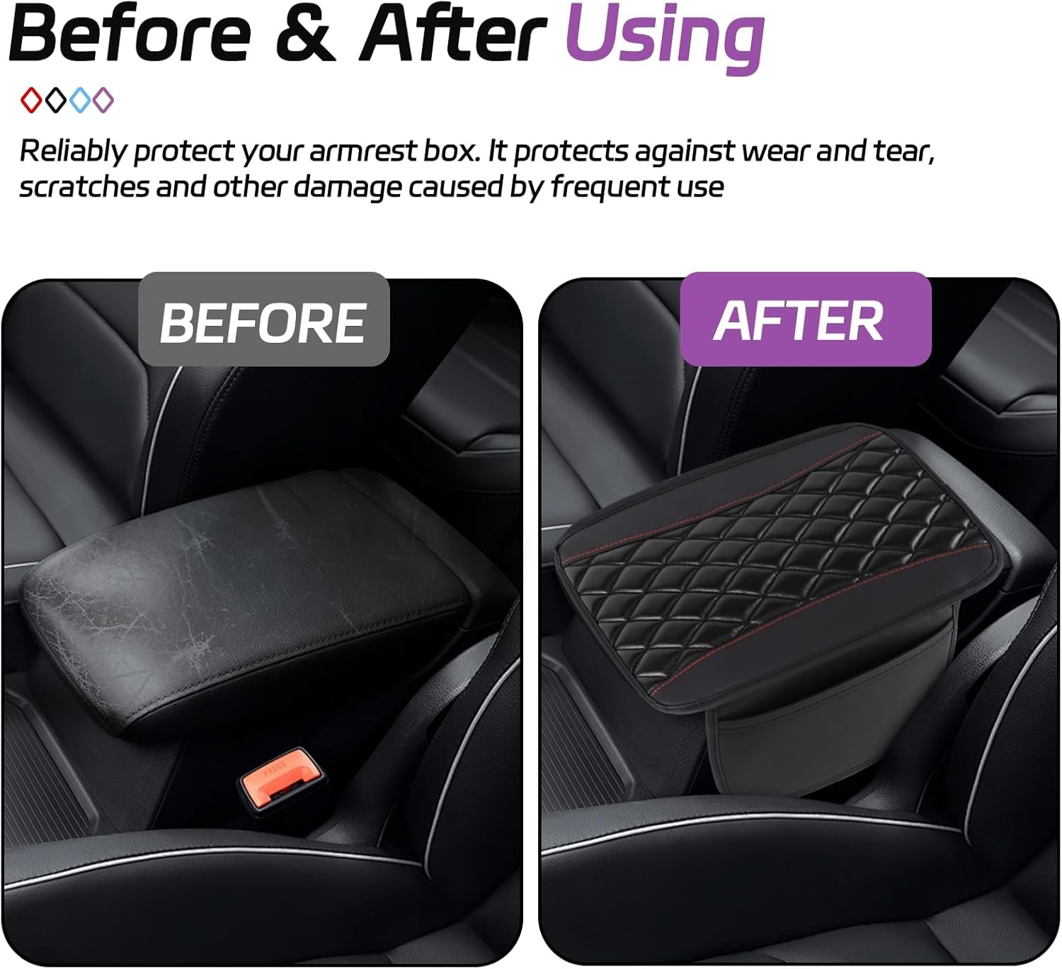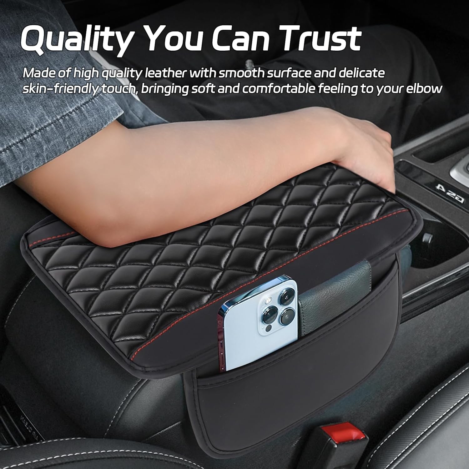 Center Console Cover, 12.4 8.1 Leather Arm Rest Cover for Car, Auto Black