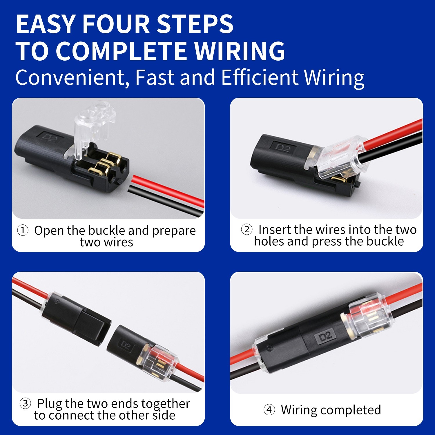 50 PCS Double-Wire Plug-in Connector, Cable Clamp with Locking Buckle AWG 18-22