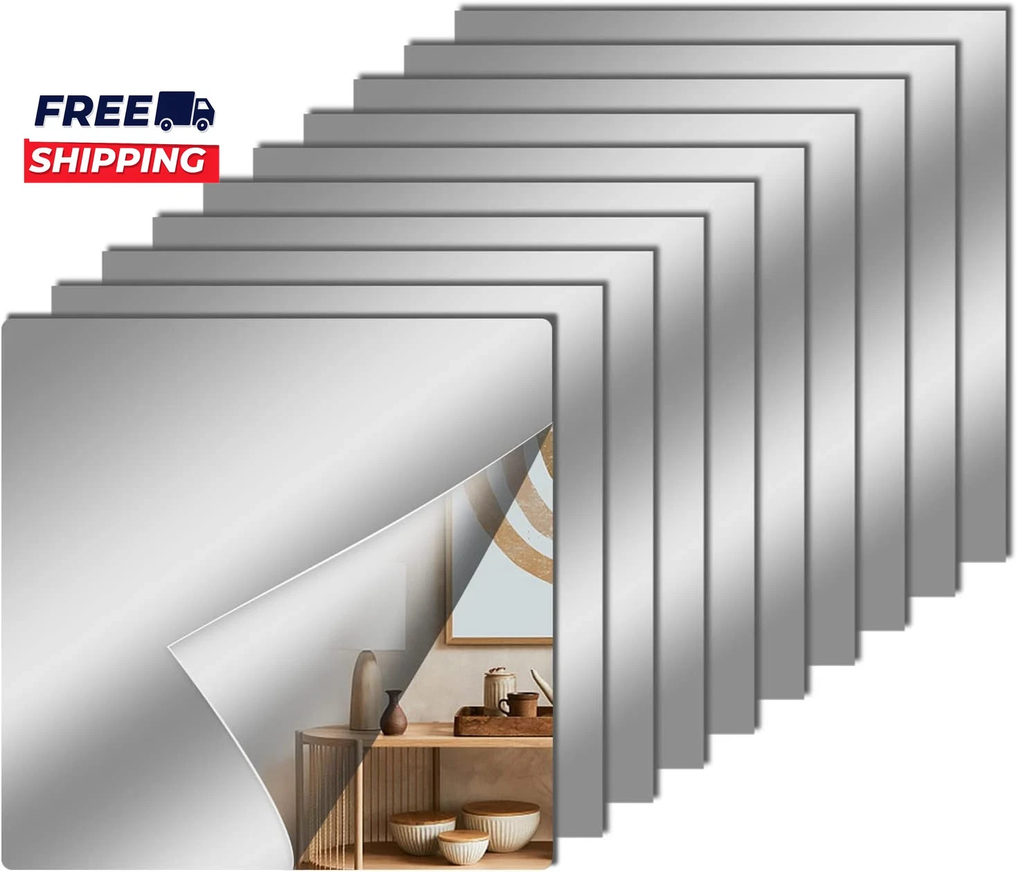12 Pcs Acrylic Flexible Mirror Sheets 12 X 12 in Mirrors Tiles Self Adhesive Squ