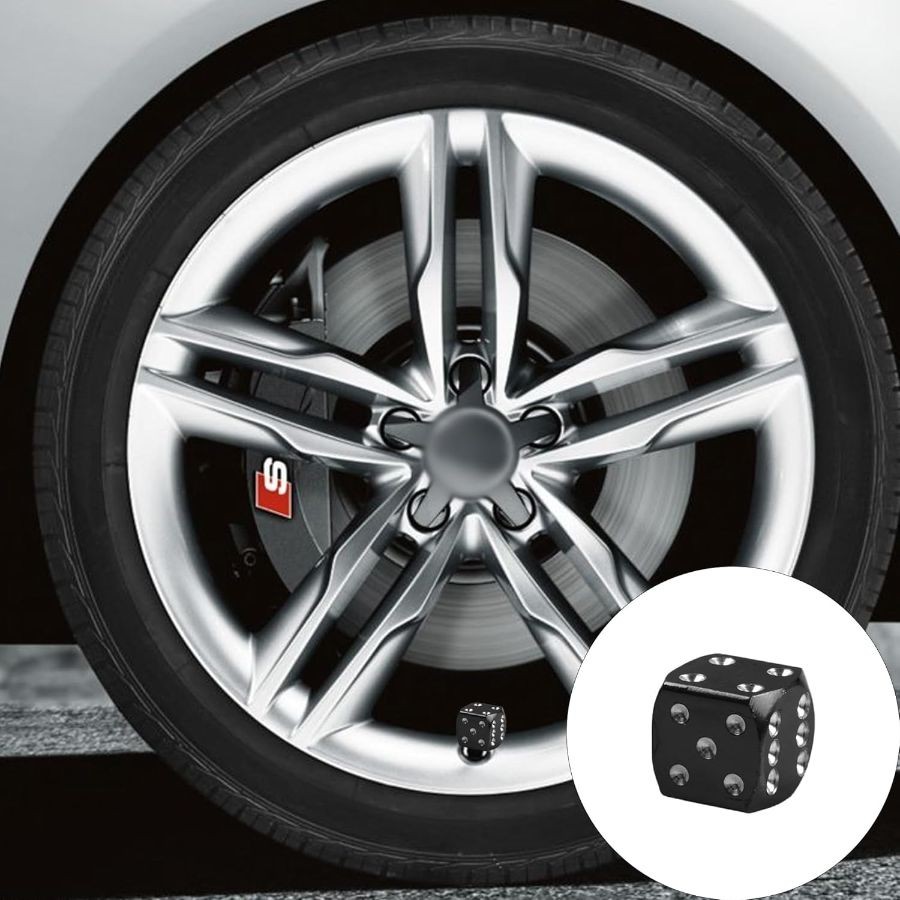 • 4PCS Dice Style Tire Valve Stem Caps, Universal Aluminum Alloy Dustproof Black
