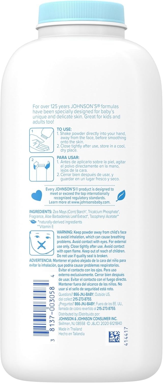 Johnson's Baby Powder with Naturally Derived Cornstarch, Aloe Vitamin E for D