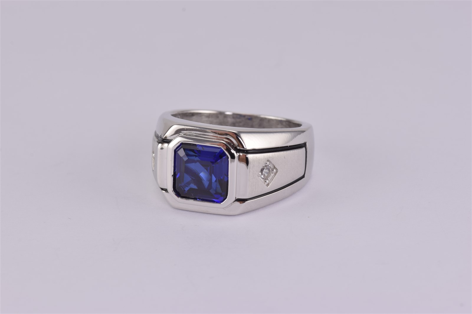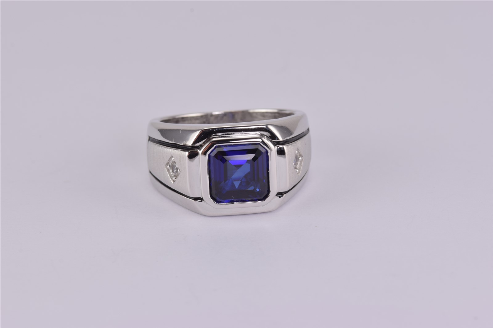 как выглядит Sterling Silver Blue Lab Sapphire Cubic Zirconia Accent Band Ring 14g 925 Sz: 11 фото
