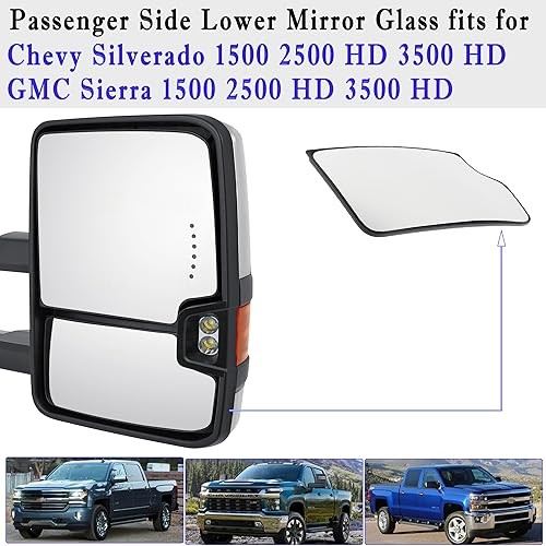 Silverado Passenger Side Lower Mirror Glass Compatible with 2014-2017 Chevy