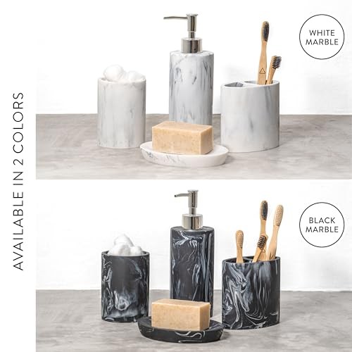 Bathroom Accessory Set, 4 Pcs Marble Look Bathroom White Marble Look Rounded