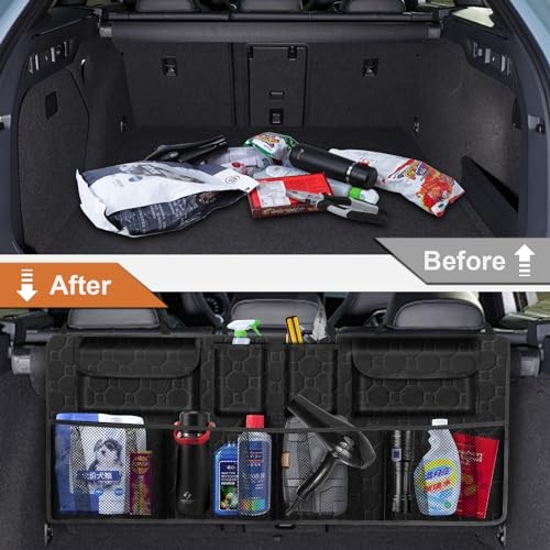 Car Trunk Organizer, Super Capacity Backseat Car Organizer for Black