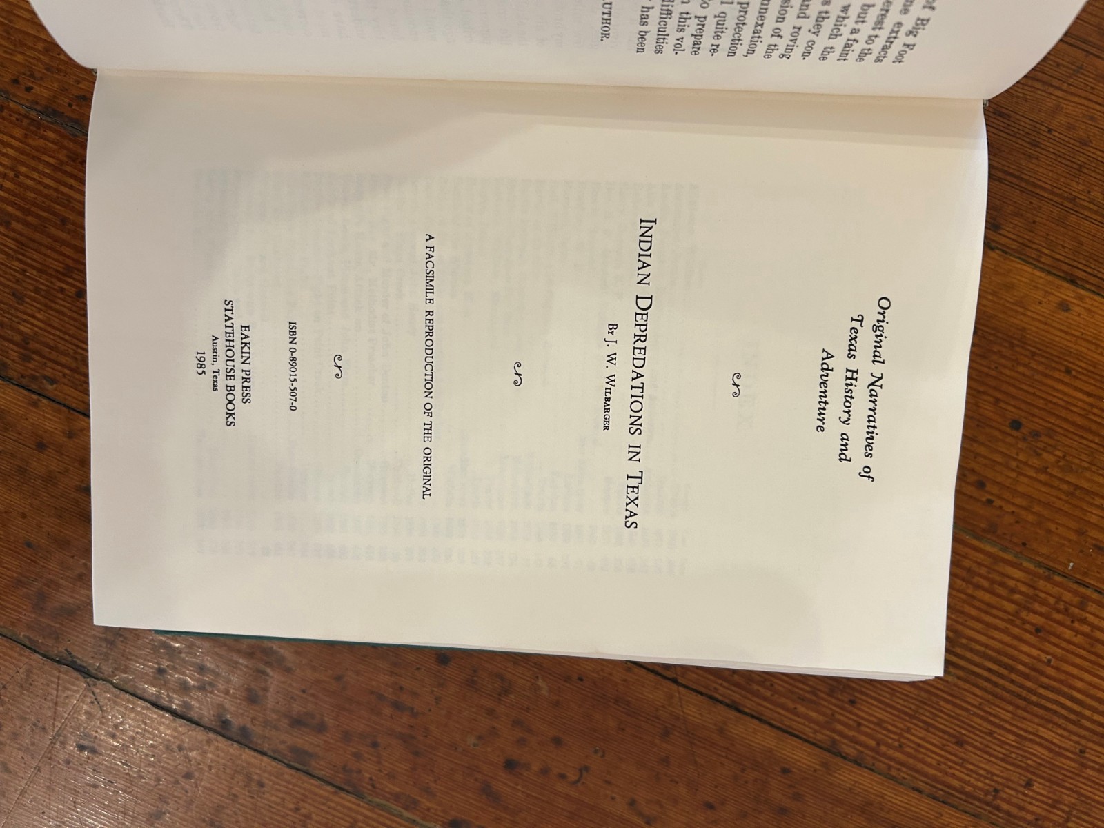 • 1985 Texas History - Indian Depredations in Texas, HC Book, by Wilbarger, Nice C