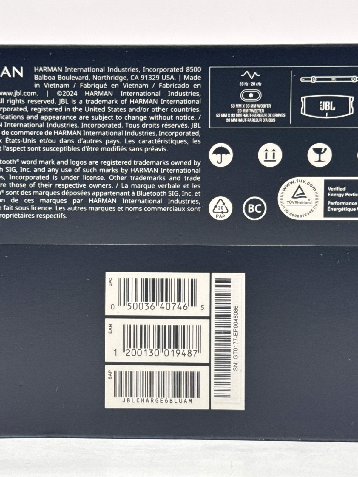 как выглядит JBL Charge 6 Portable Waterproof Wireless Speaker Blue - New in Box фото