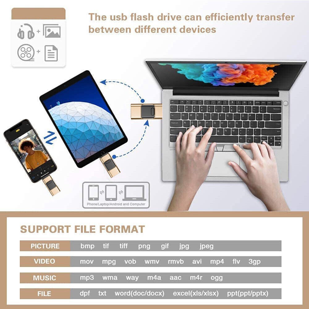 4 IN 1 USB 3.0 Flash Drive Memory Photo Stick for iPhone Samsung Type C